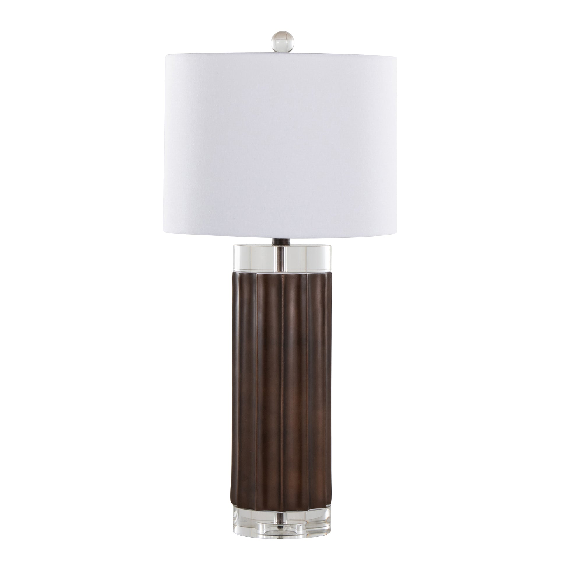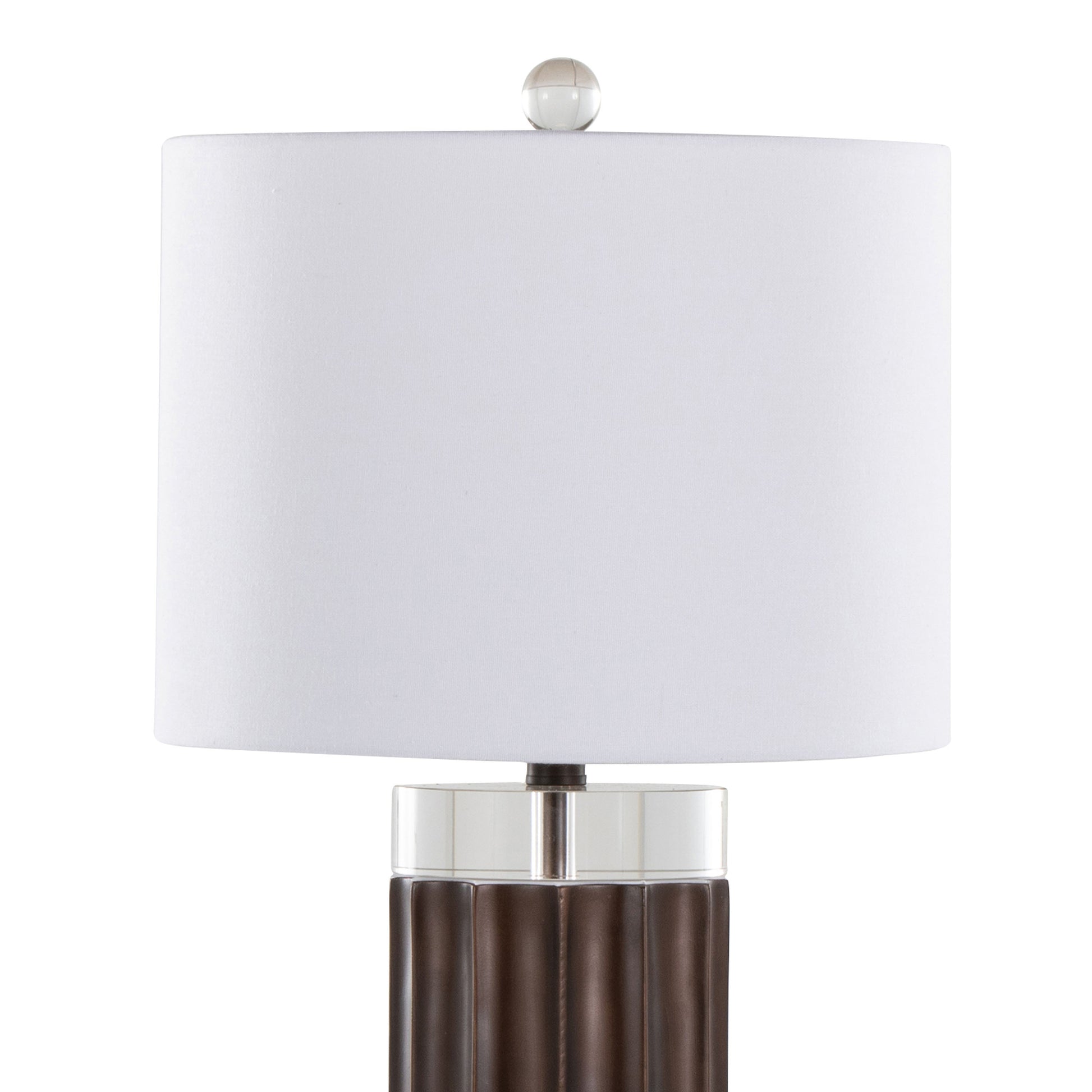 29.25-Inch Fluted Cylinder Table Lamp, Polyresin Base, Crystal Cylinders, White Linen Shade, Brown Lustre