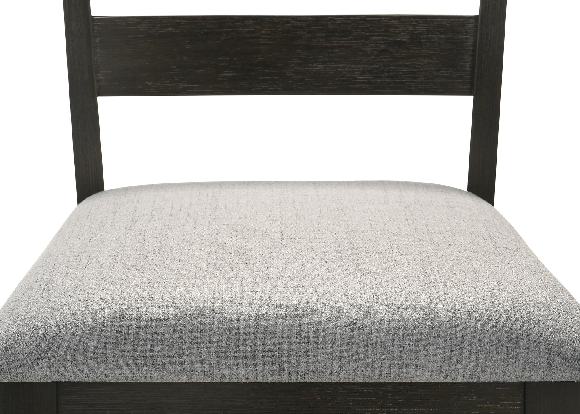 Contemporary Dining Chairs Set of 2, Solid Wood, Fabric Cushions, Ladder Back, Wheat Charcoal Finish
