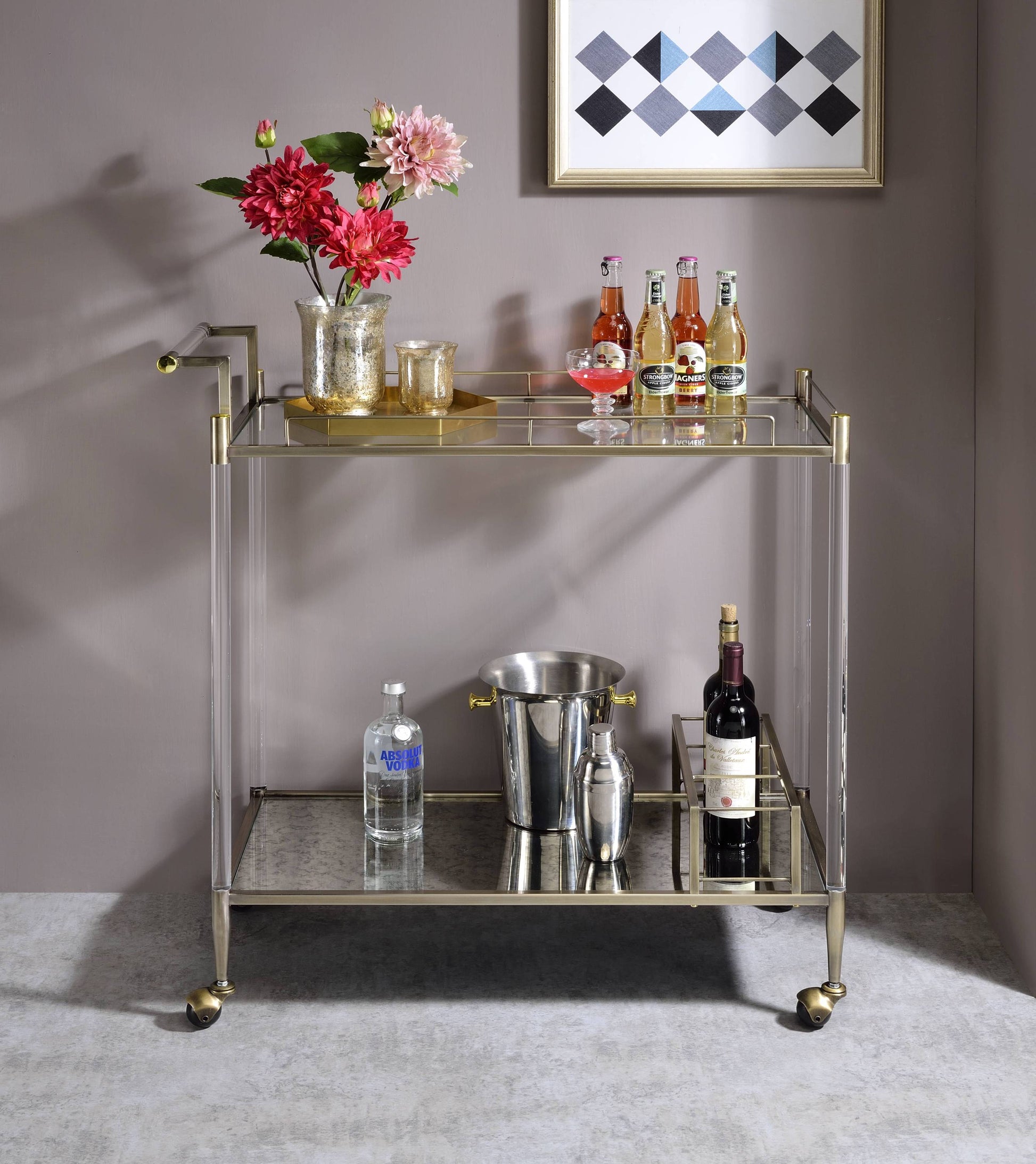 Vintage Elegance Brass Finish Serving Cart Antique Mirror