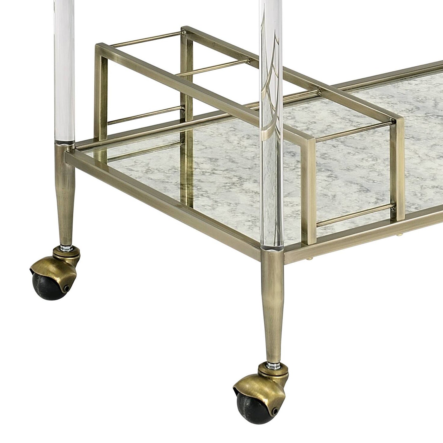 - Antique mirror panel adds depth and character, enhancing the cart’s timeless appeal.