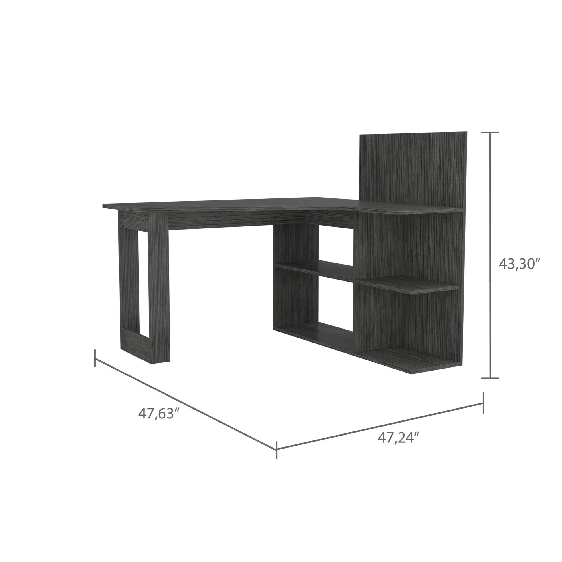 L-Shaped Modern Computer Desk with Five Open Shelves - Smokey Oak