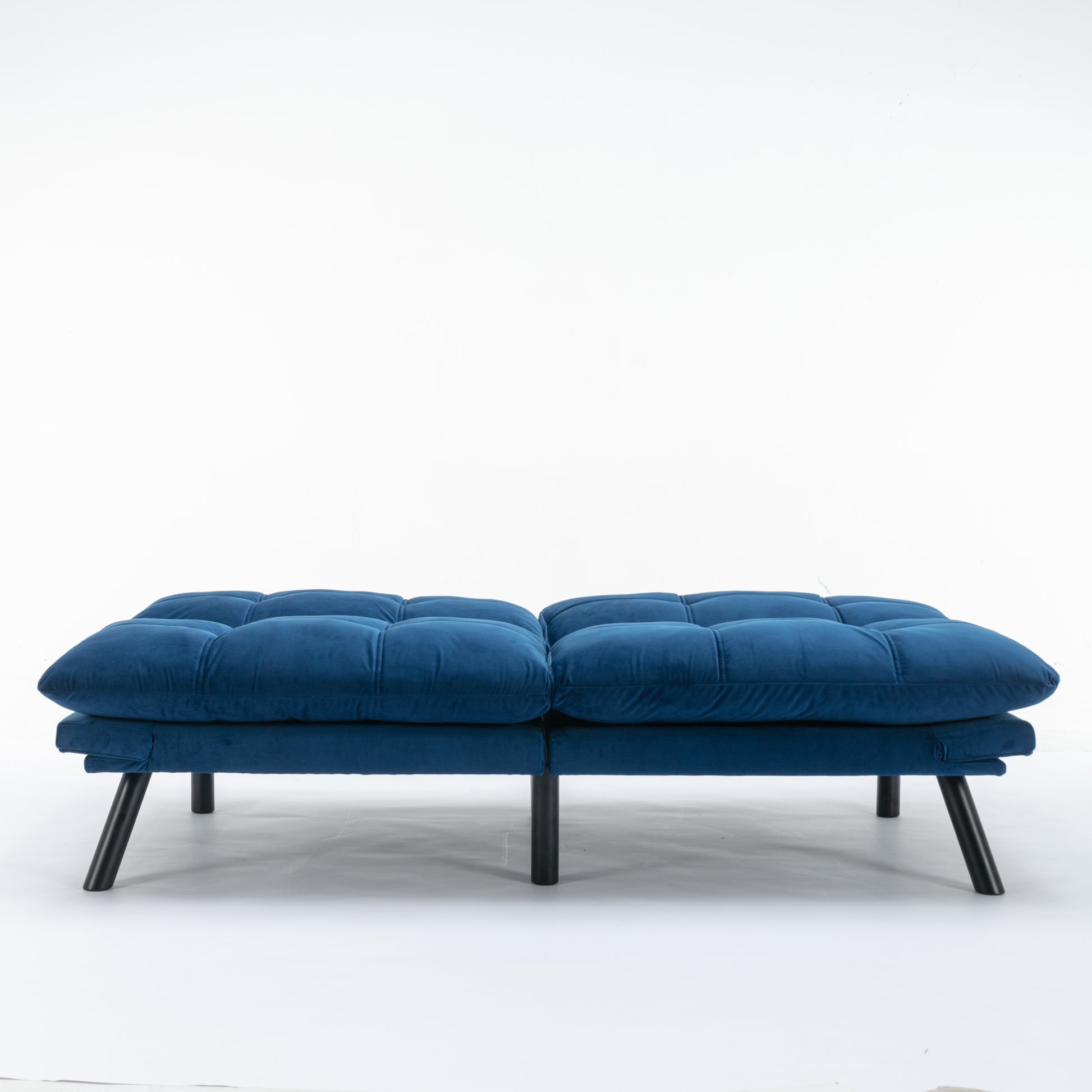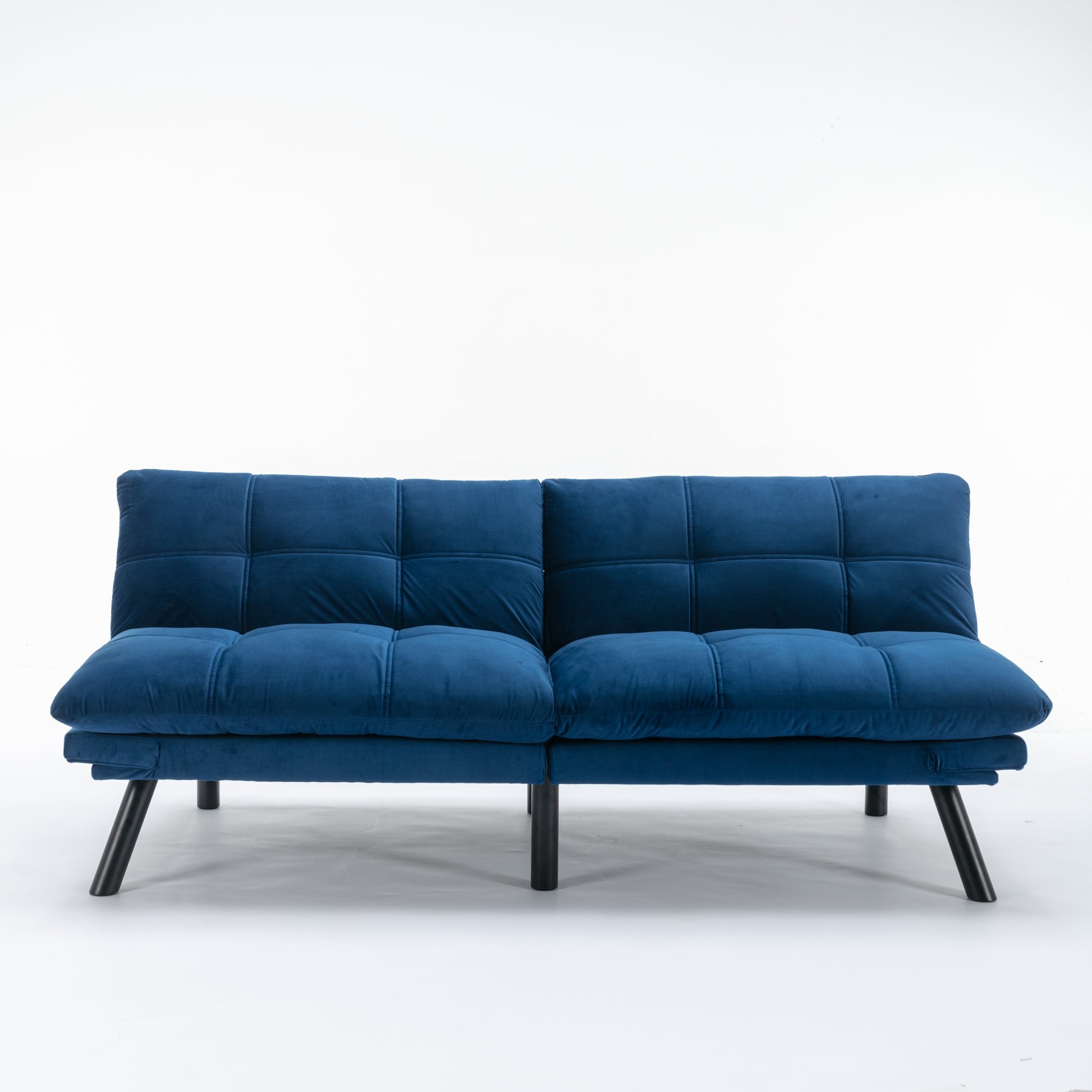 Modern Convertible Sofa Bed with Adjustable Backrest and Armrests, Velvet Upholstery, 70 in, Navy Blue