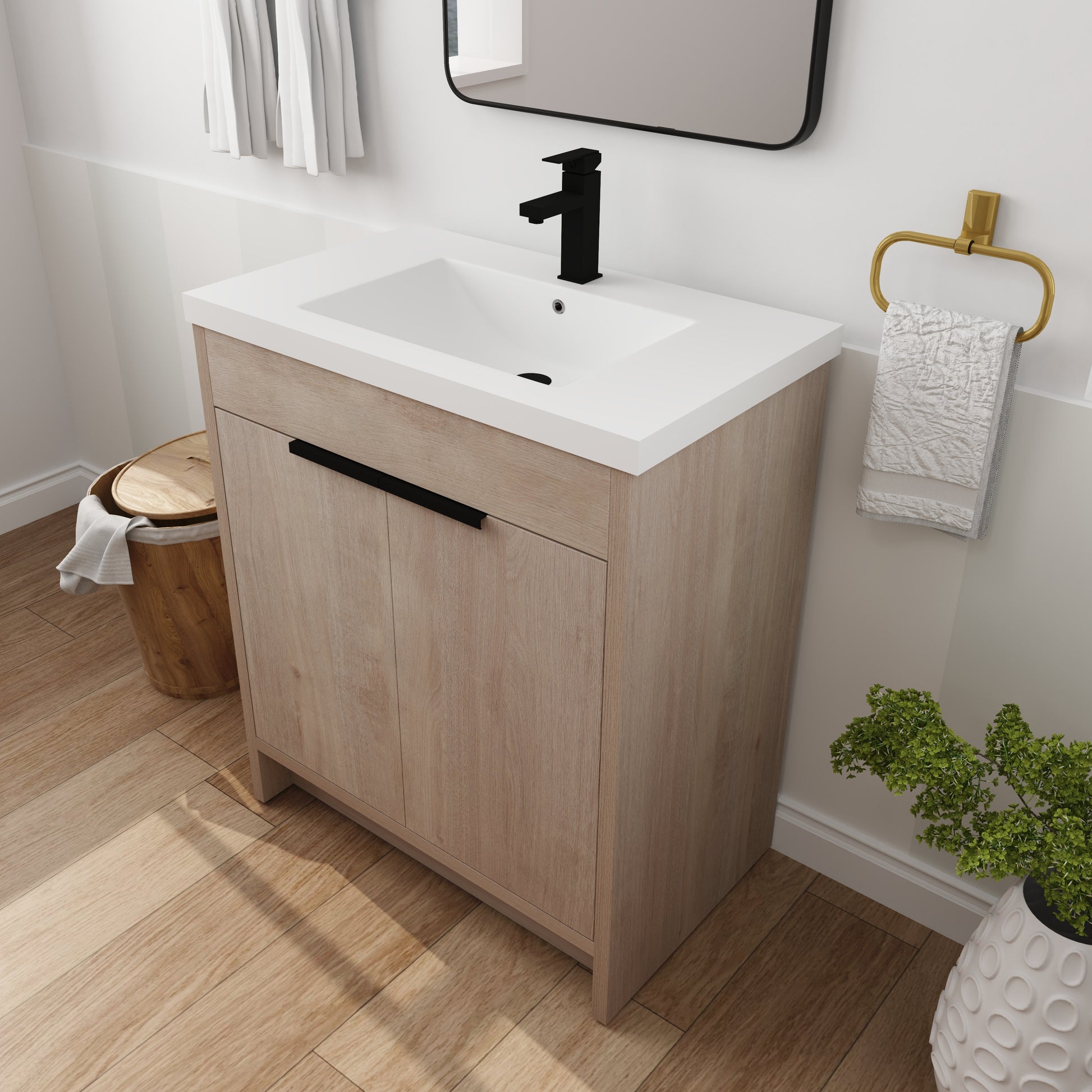 30-Inch Light Oak Freestanding Bathroom Cabinet with Soft-Close Doors & Integrated Resin Sink