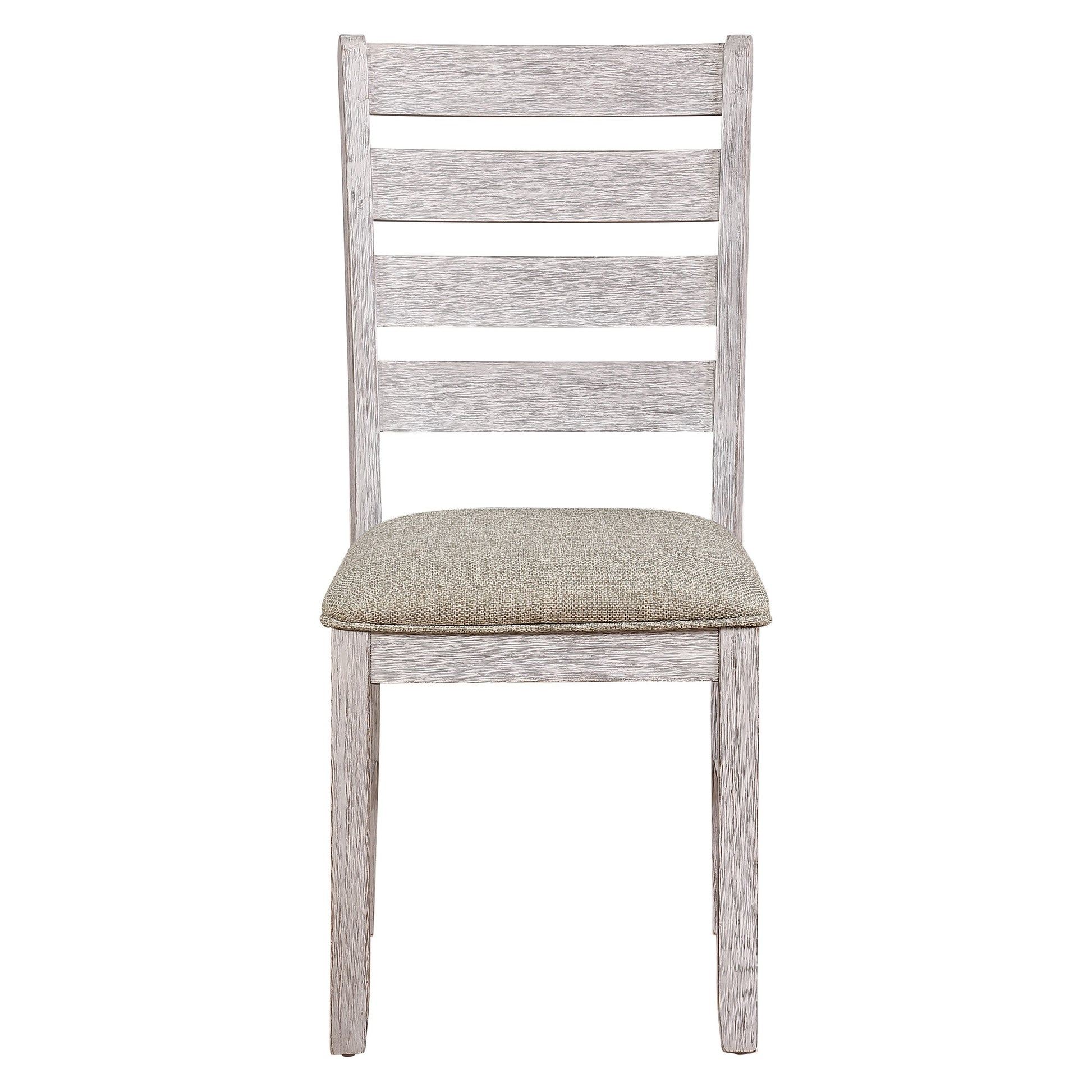 Elevate your dining space with this Grayish White and Brown Finish Casual Dining Room Furniture 5pc Dining Set. Featuring a rectangular wooden table and four fabric-upholstered chairs, this contemporary ensemble blends neutral tones with warm wood to create a versatile centerpiece for everyday meals and entertaining.