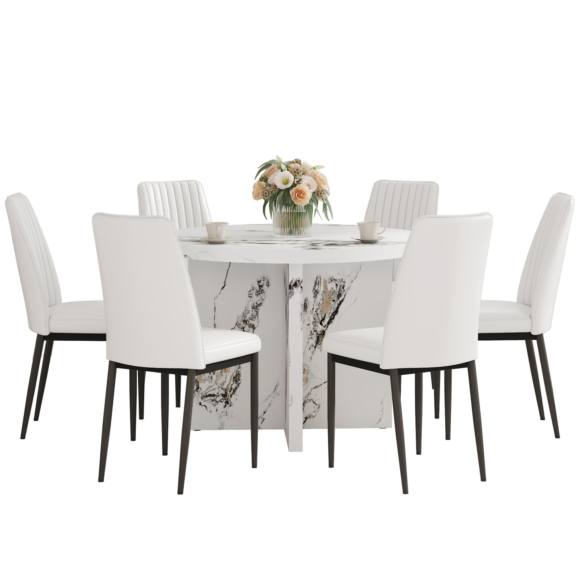 Upgrade dining spaces with a round dining table designed to seat 4–6 guests. The 42-inch table top is crafted from durable MDF and finished in a crisp white, offering a versatile centerpiece for kitchens, dining rooms, cafes, wine bars, and compact conference spaces.