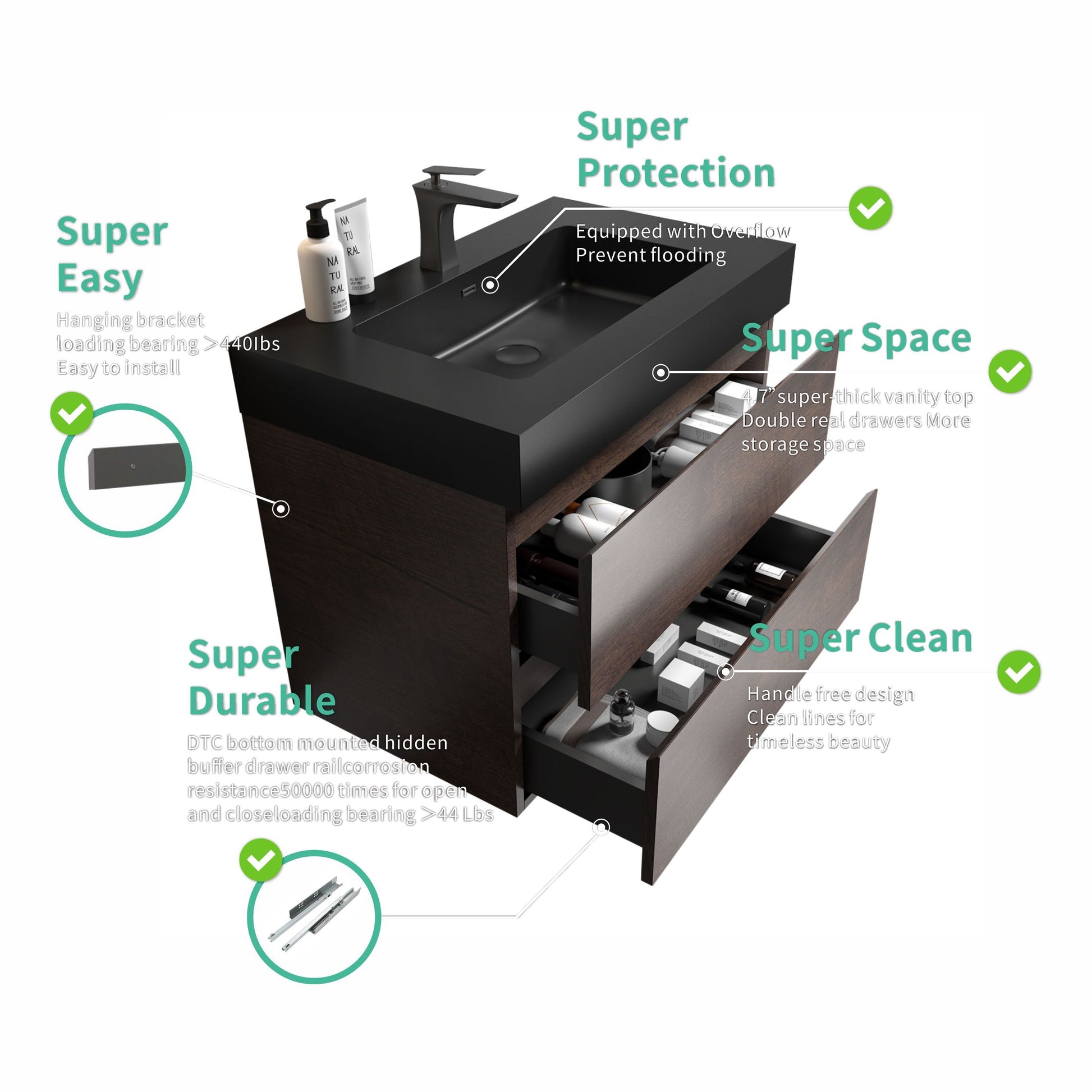 - Ample Storage Space: With double drawers that provide a remarkable 20% increase in storage capacity, this vanity ensures your essentials are neatly organized and easily accessible.