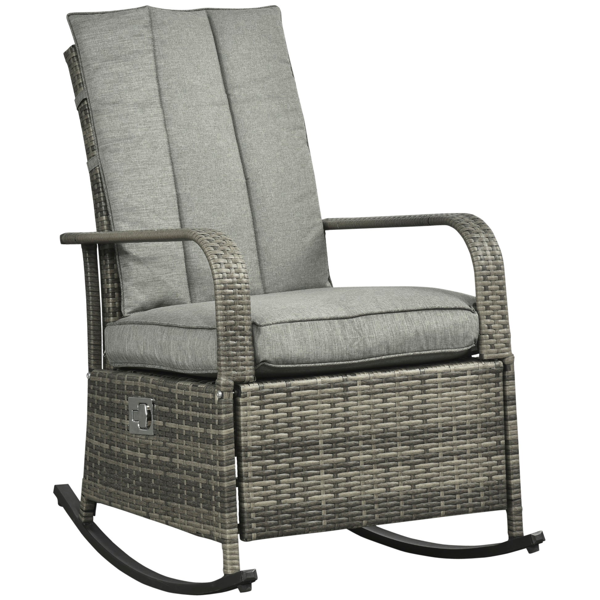 Experience outdoor comfort like never before with the Outdoor Rattan Rocking Chair With Cushions And Adjustable Footrest. This gray PE wicker patio recliner delivers indoor-level relaxation in an all-weather design built for porch, deck, or garden living.