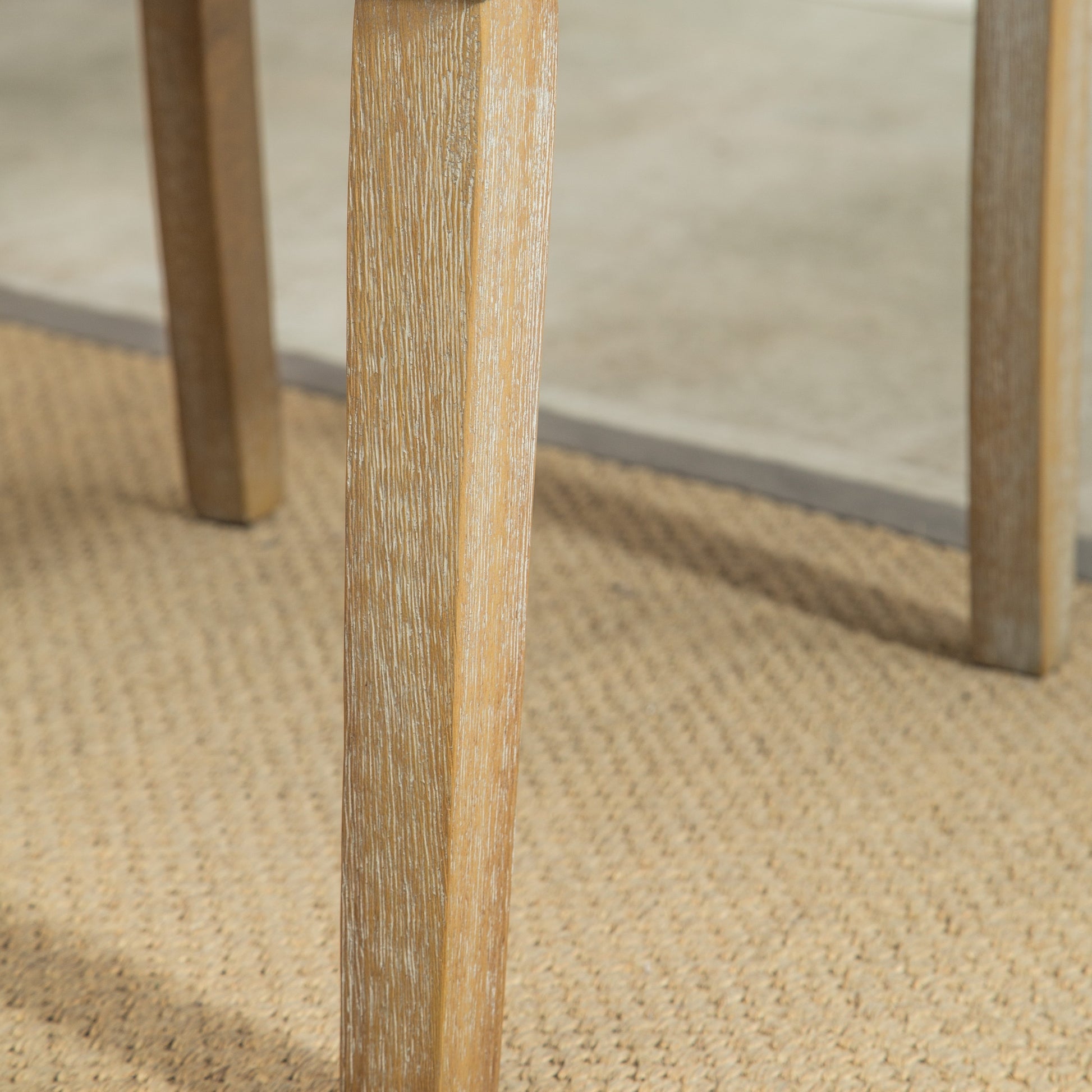 - Dust wood legs regularly and use a soft cloth to maintain the oak finish.