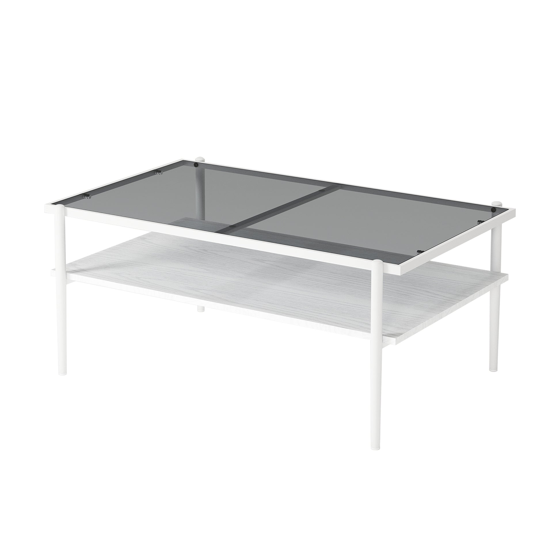 Rectangular Coffee Table with Tempered Glass Top and MDF Base, 38.39"L x 24.21"W x 17.72"H, Gray