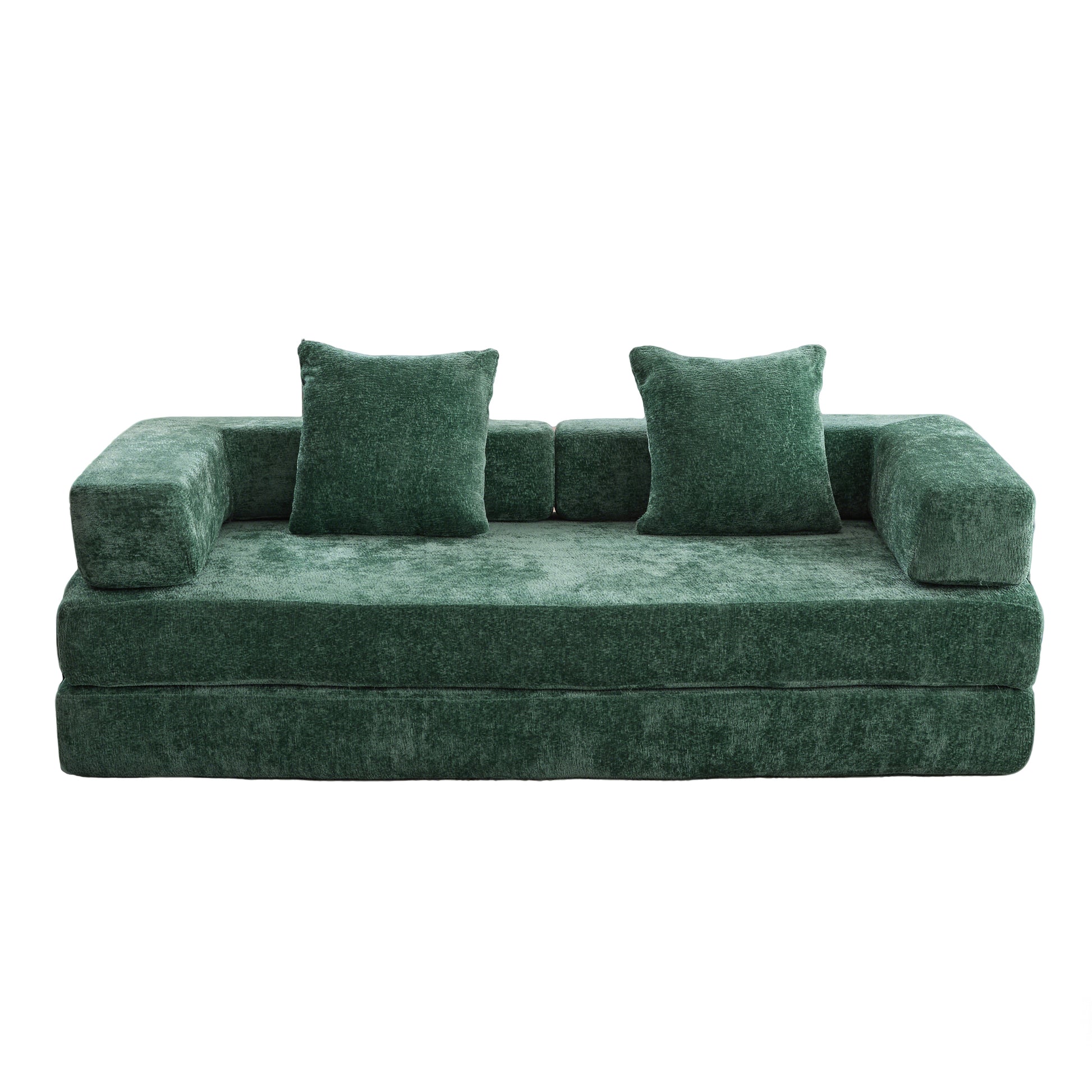 2-in-1 Convertible Floor Sofa Bed with Back, Armrests, Chenille Upholstery for Room dark green
