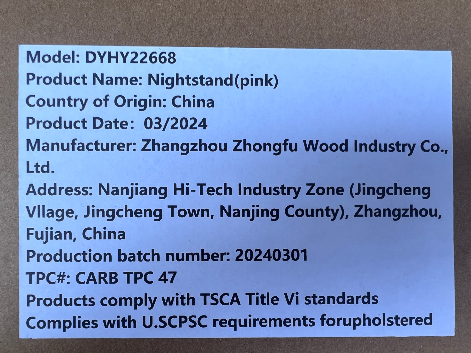 - Country of Origin: China