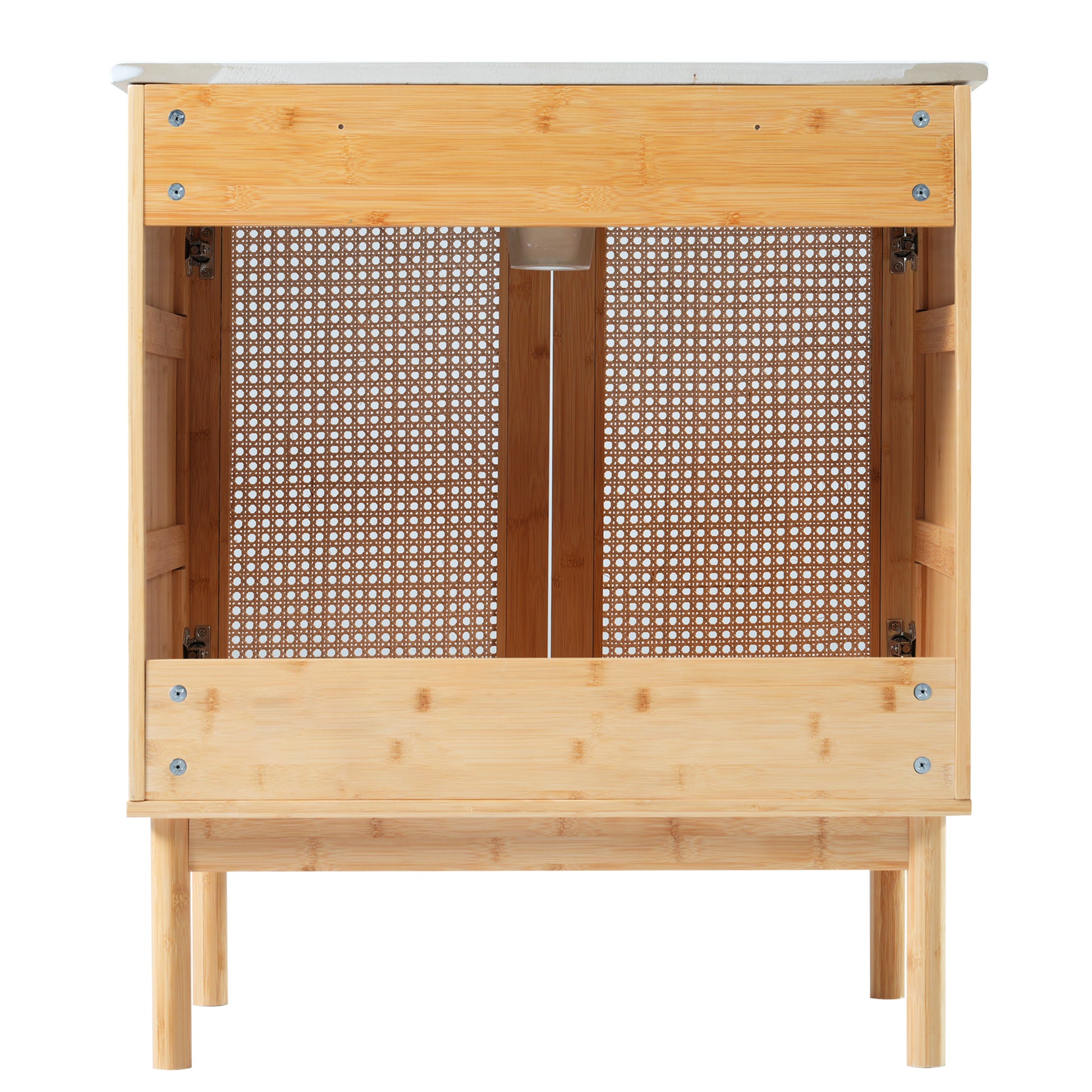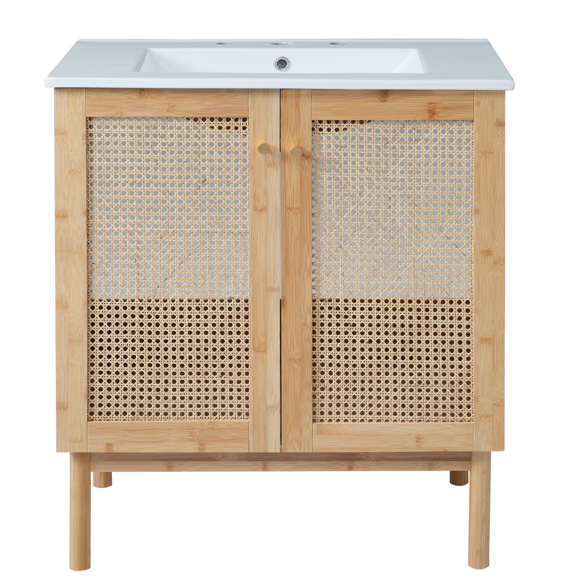 Elegant 30-Inch Natural Bamboo Bathroom Vanity with Artisanal Rattan Doors and Soft-Close Mechanism