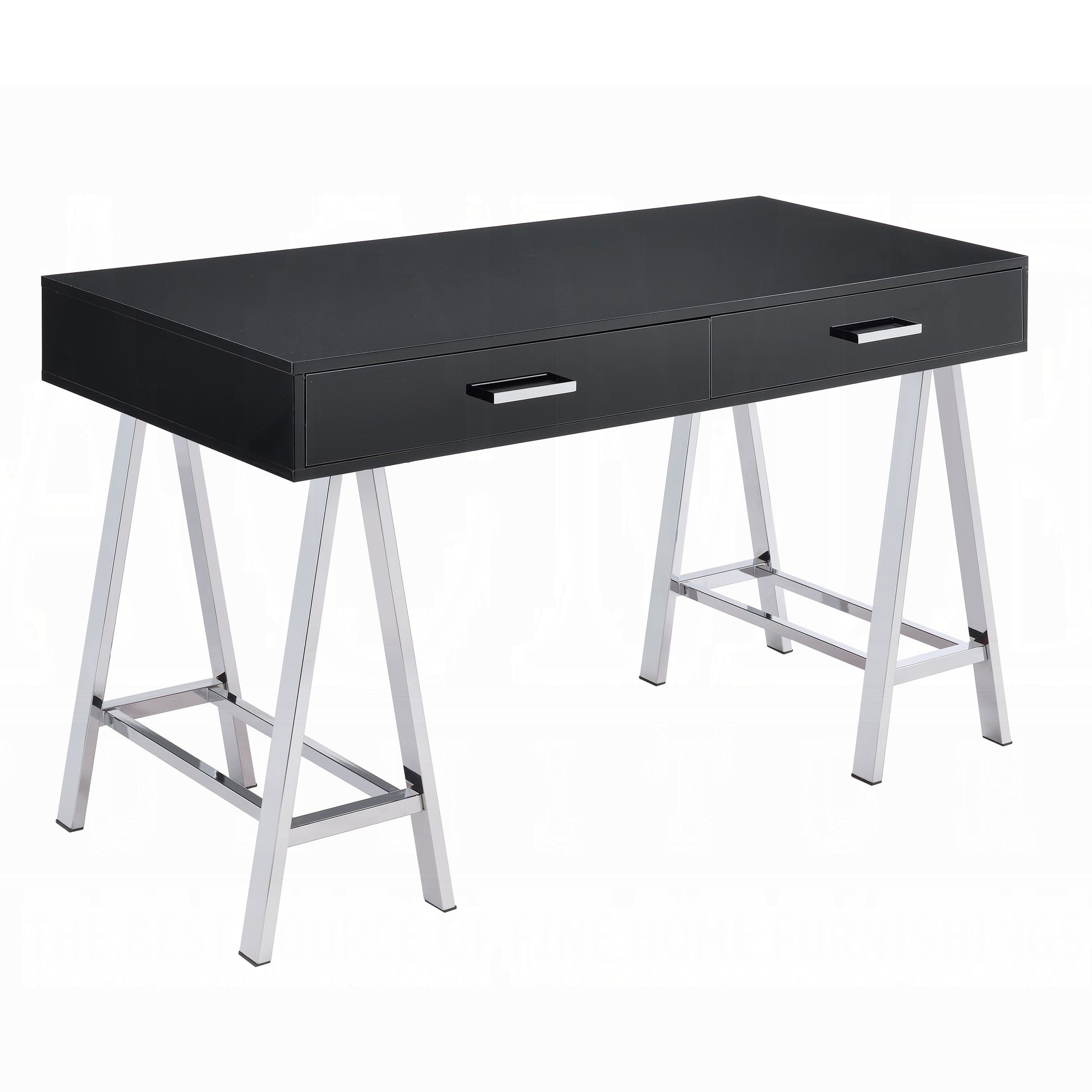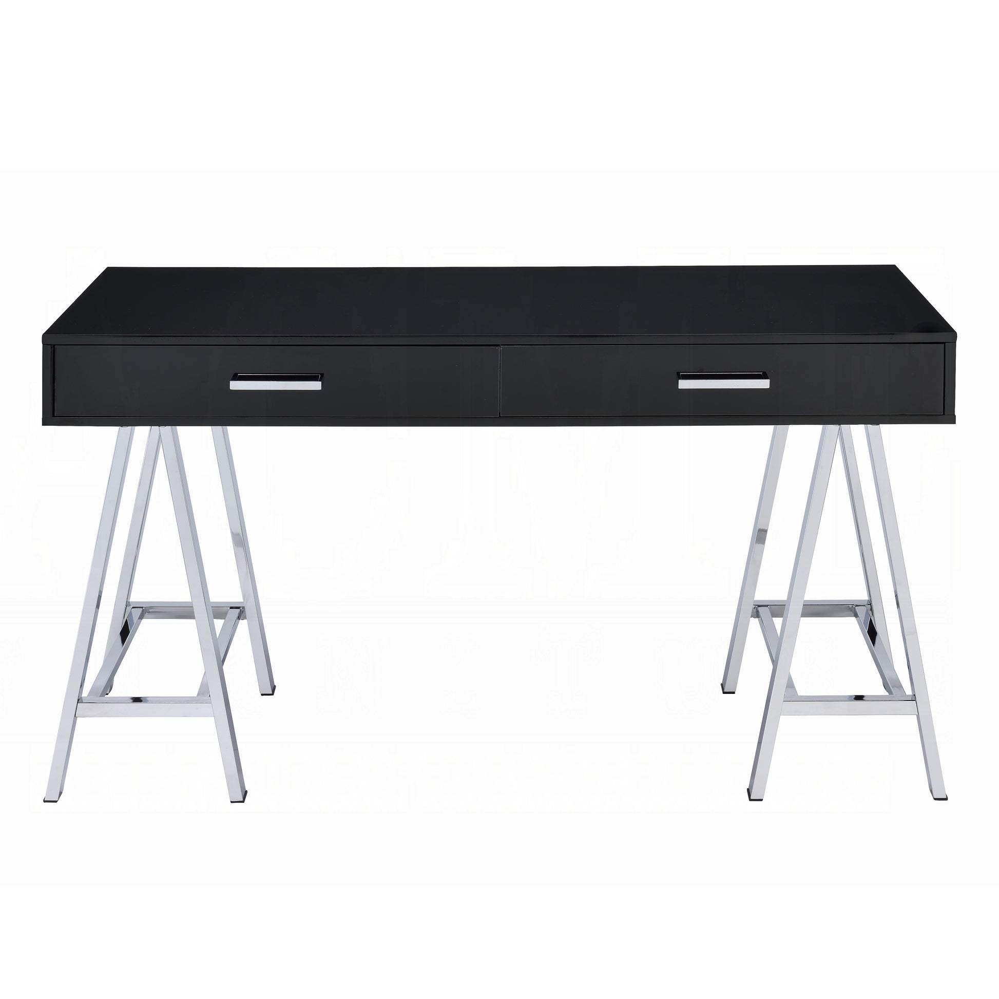 Sleek Black and Chrome Modern Writing Desk with Two Drawers