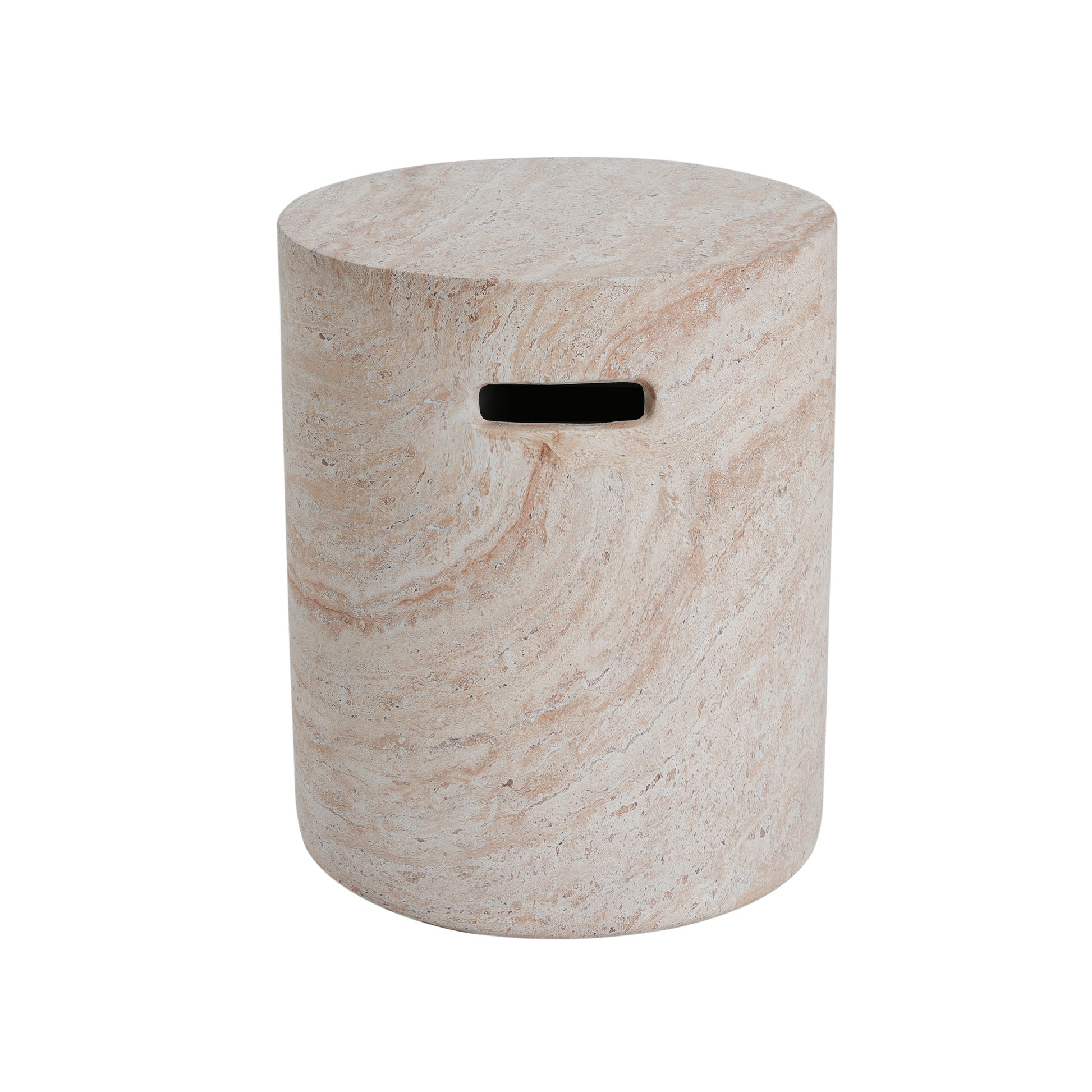 Round Concrete Side Table for Indoor/Outdoor Use, 15.5 x 15.5 x 18.5 in, Lightweight, Travertine Finish, Beige
