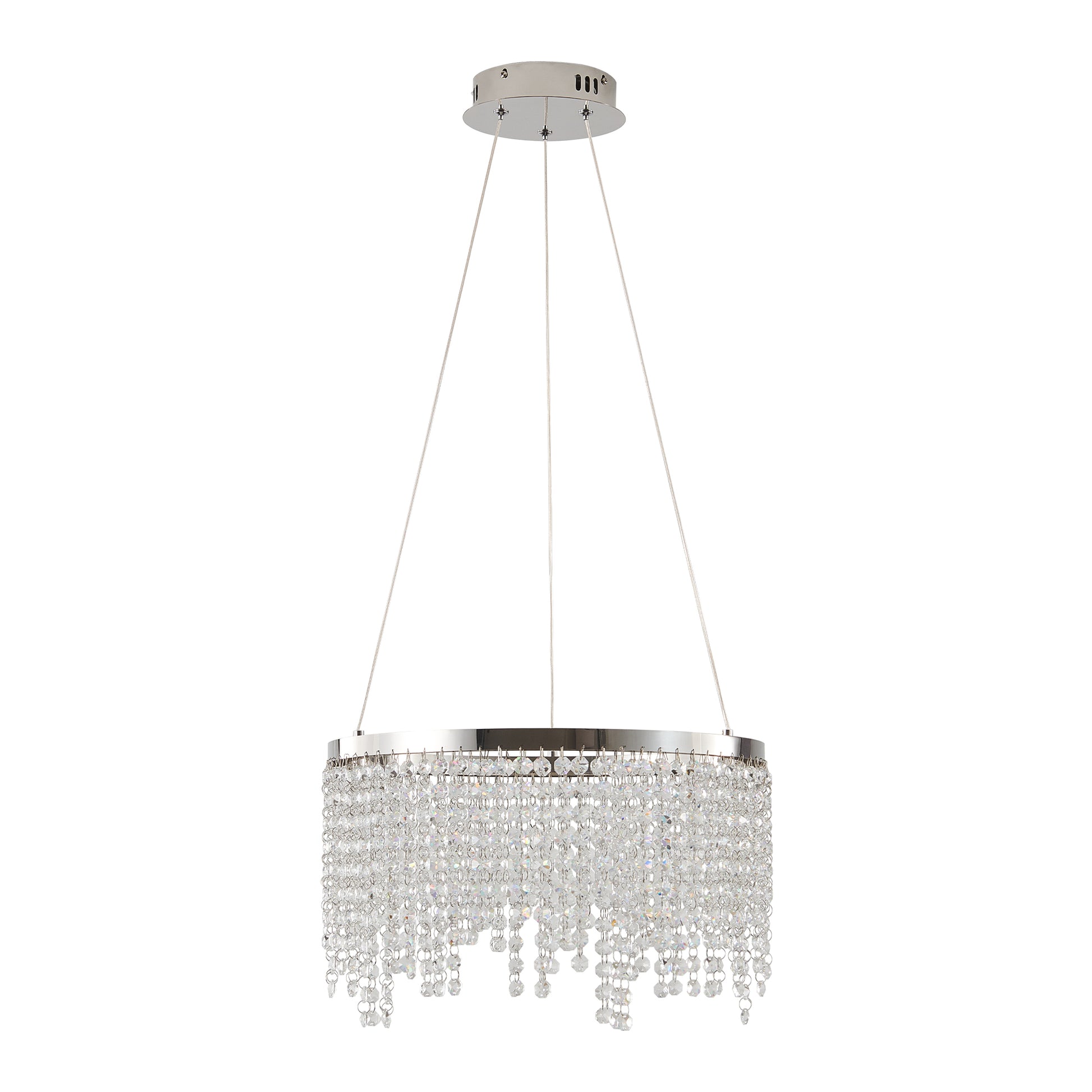 15.7-Inch Crystal Pendant Ceiling Light with Adjustable Height, 16W LED, 110V, Chrome/Transparent