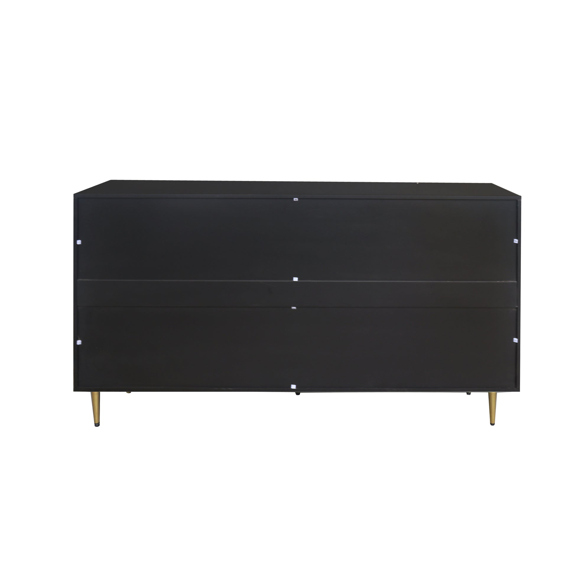 Elevate your space with the Modern Black Lacquered 4-Door Wooden Cabinet Sideboard. This minimalist storage piece blends clean lines with a stable, durable build, making a bold statement while delivering powerful practicality for living rooms, entryways, dining rooms, kitchens, and offices. The matte black lacquered finish is accented by shining gold-toned door knobs and legs, adding a touch of sophistication to any decor.