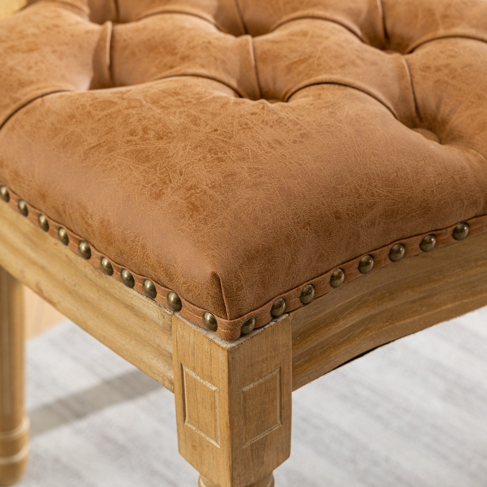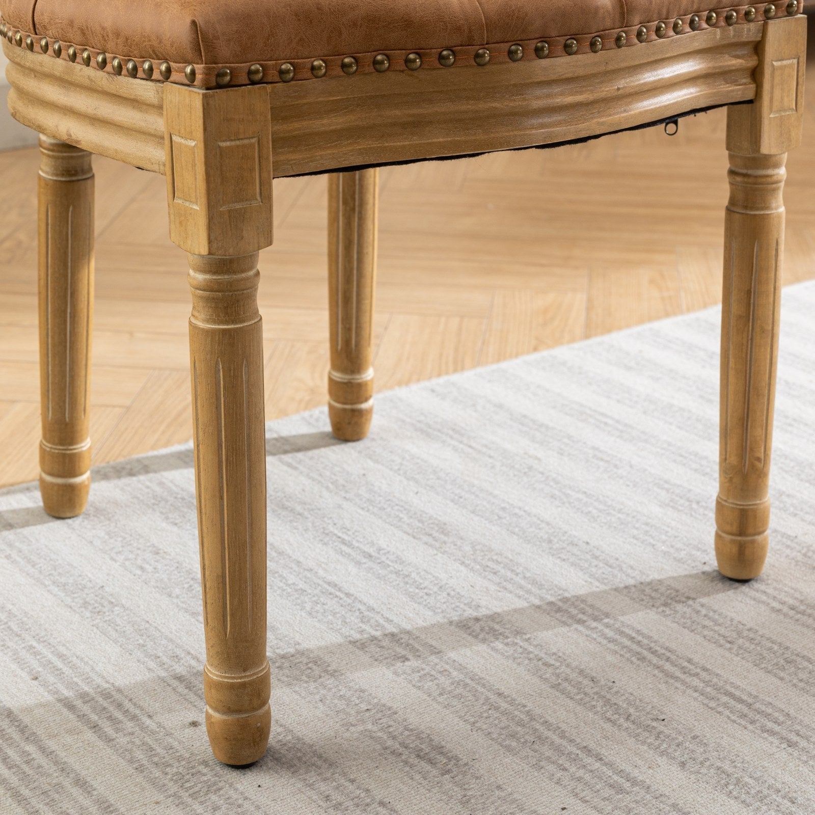 French Style Solid Wood Dining Chair Set of 2 with PU Leather, Nailhead, High Back, Rubberwood Orange