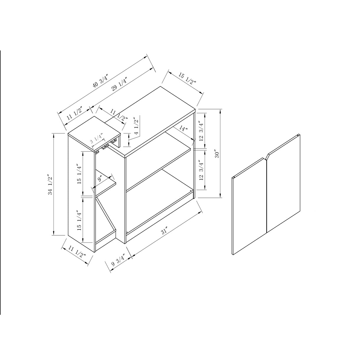 - Dimensions (L x W x H): 40.75 in x 15.50 in x 34.50 in