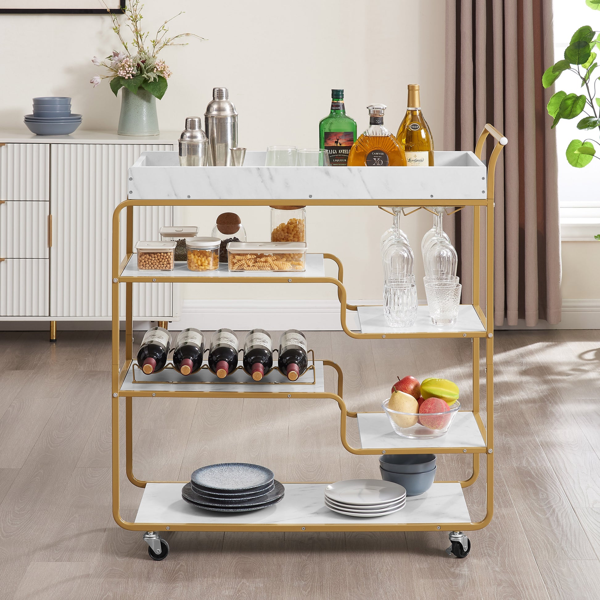 Elegant Six-Tier Rolling Bar Cart with Gold Finish
