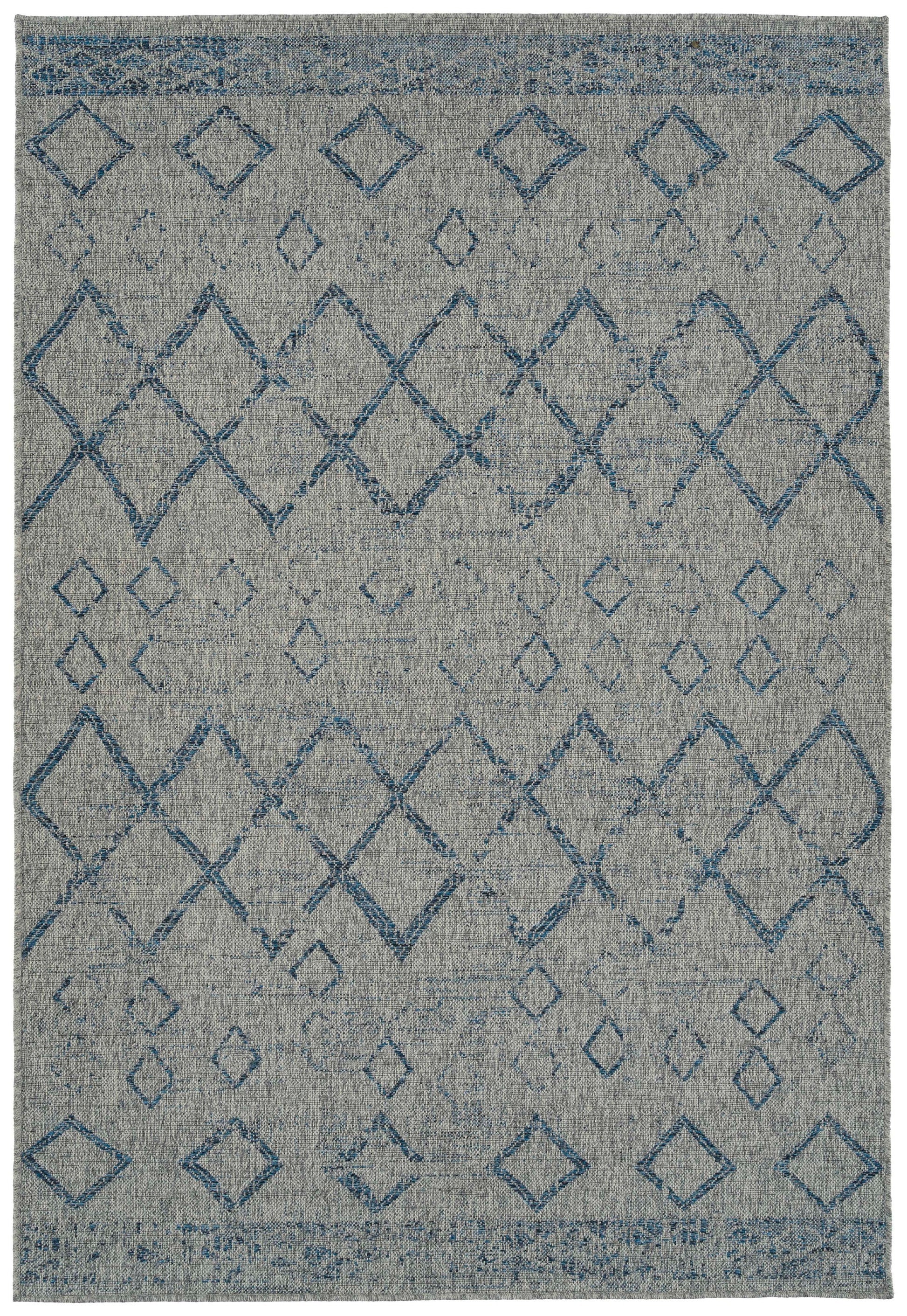 Rectangle Area Rug 5'3" x 7'6", Polypropylene Indoor/Outdoor, High-Low Cut & Loop, Modern Geometric Grey