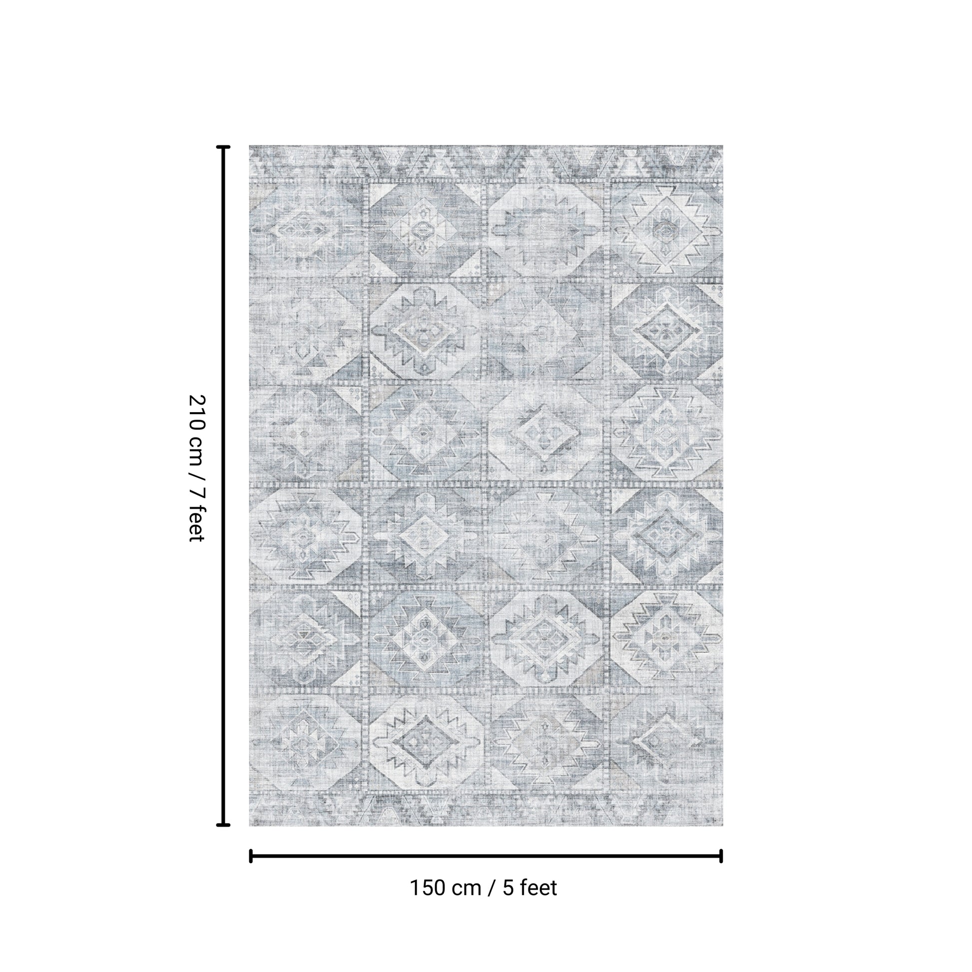 5' x 7' Washable Non-Slip Area Rug, Low-Pile Polyester, TPR Backing, Durable for High-Traffic, Silver