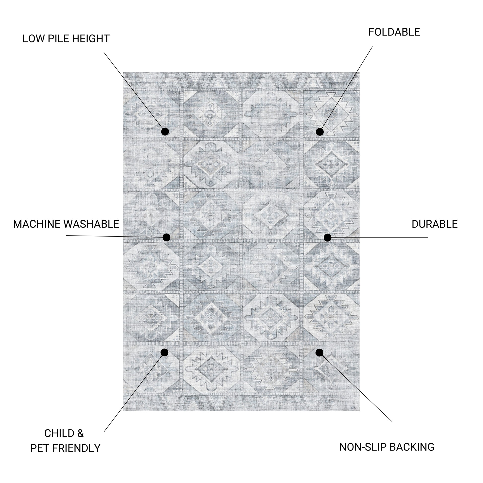 5' x 7' Washable Non-Slip Area Rug — Silver