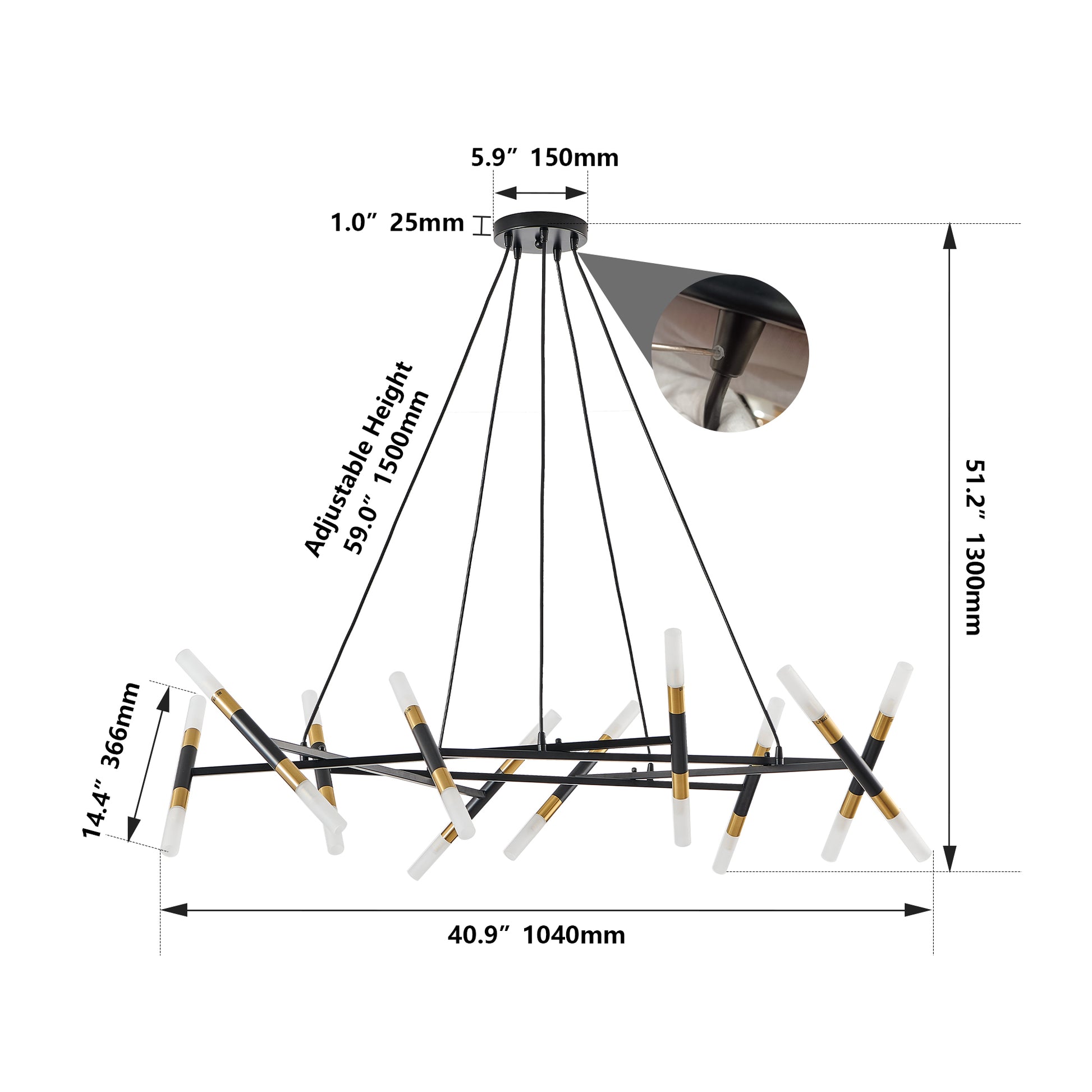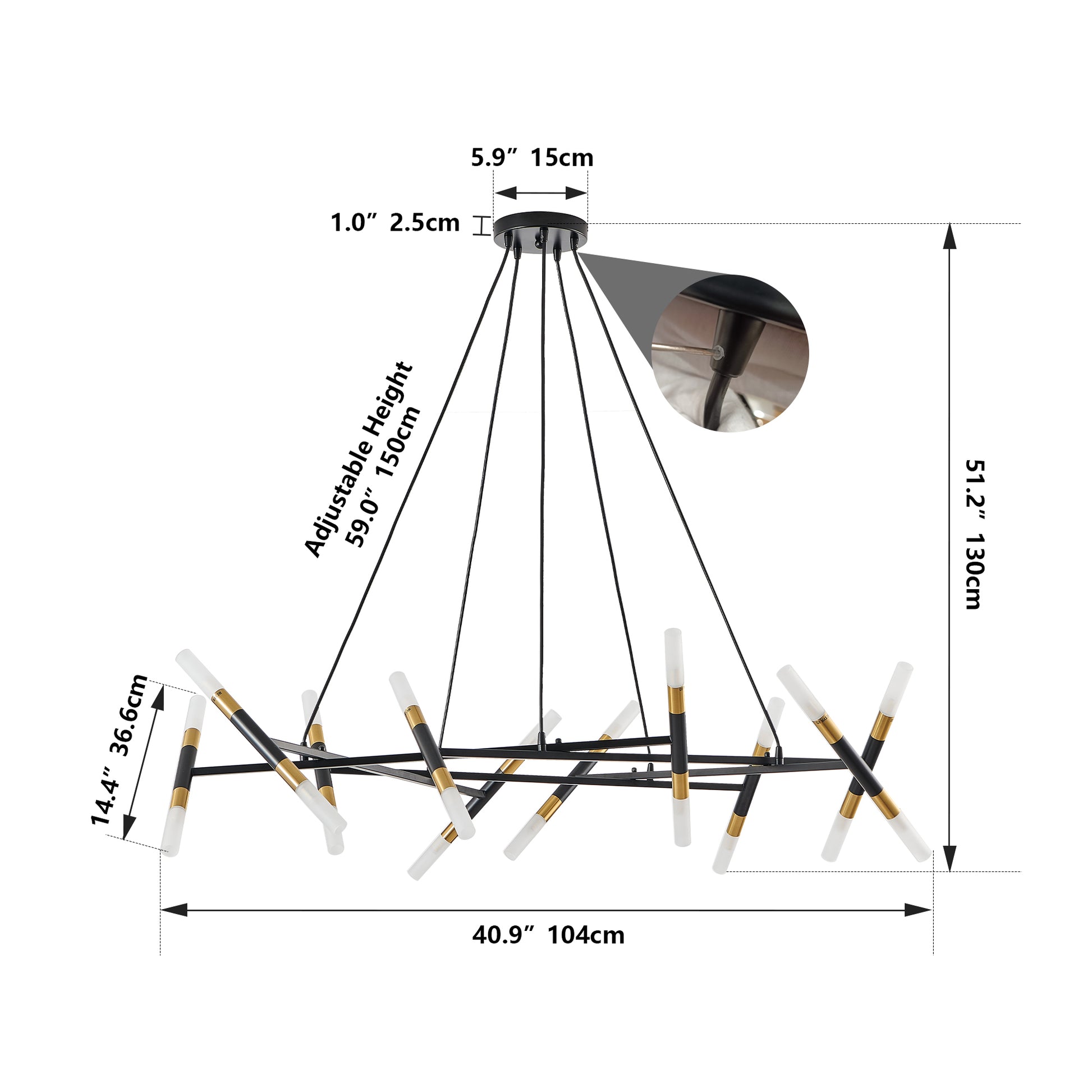 Elevate your space with a sleek, modern branch chandelier that combines artistry and function. The branch-inspired silhouette, finished in matte gold against a bold black frame, creates an atmospheric centerpiece perfect for dining rooms, living rooms, or kitchen islands. The frosted tubes diffuse light with a soft, luxurious glow, delivering high-end style without overpowering your decor.