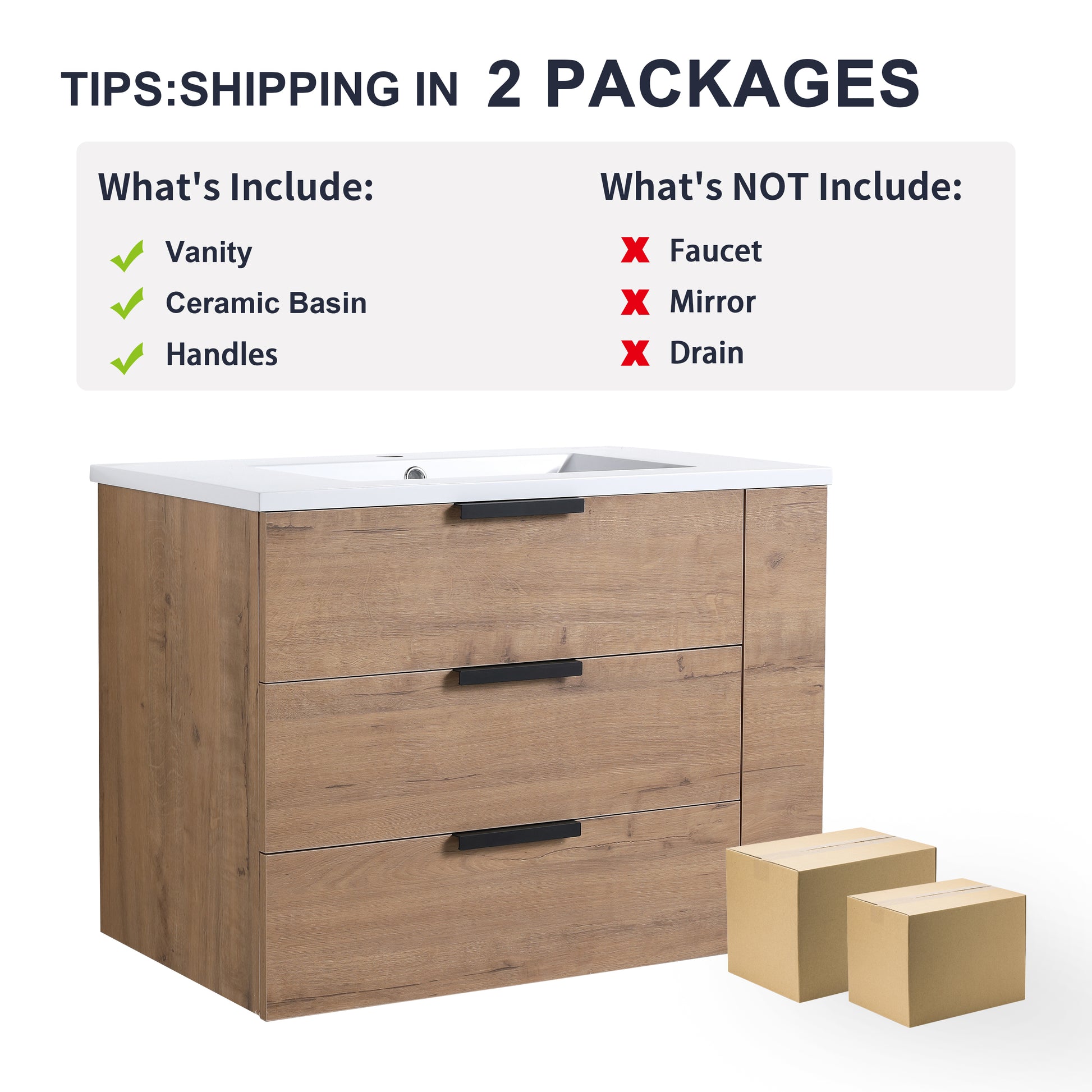 Upgrade your bathroom today with our 30-Inch Modern Wall-Mounted Vanity. Experience the perfect blend of style, functionality, and quality!