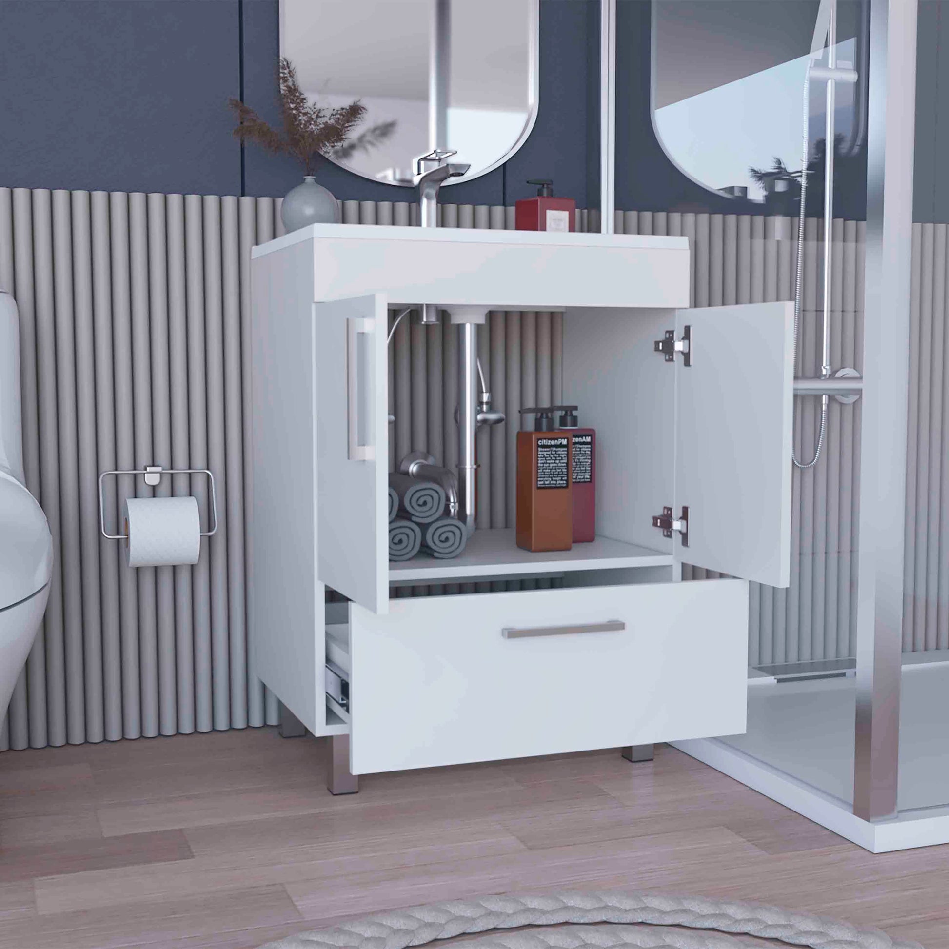 Modern White Bathroom Vanity with Double Door Cabinet and One Drawer