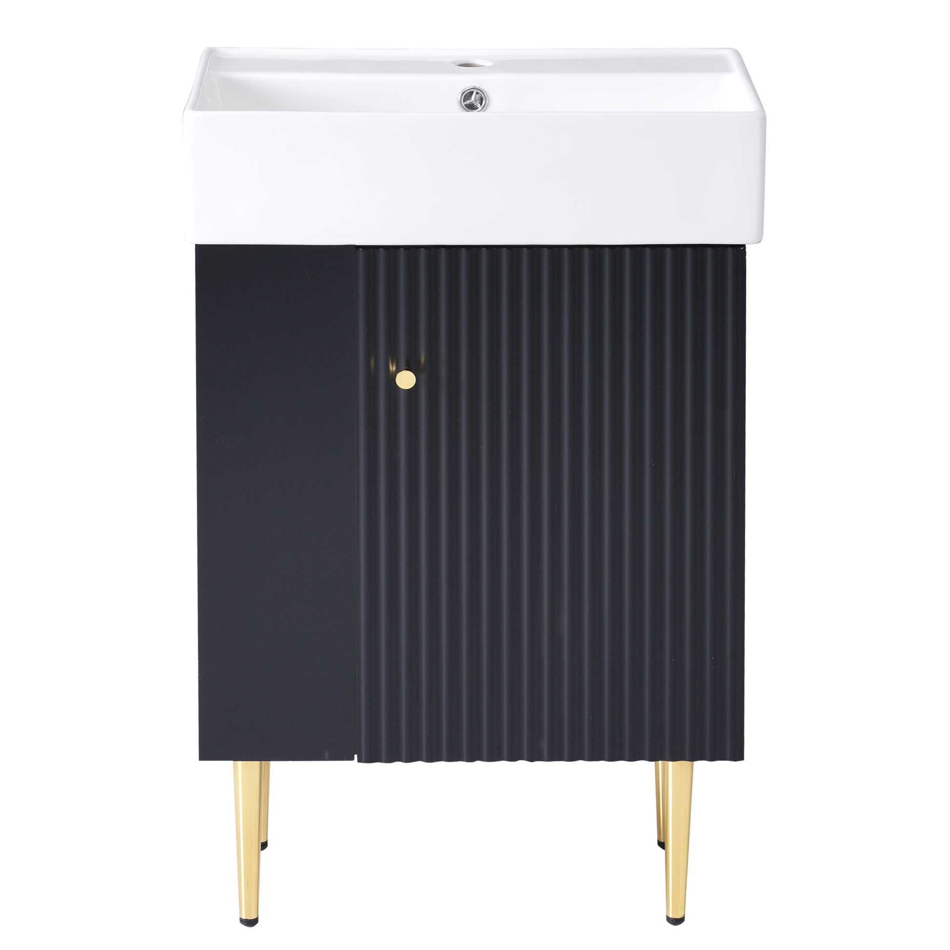 21.6" Modern Black Bathroom Vanity with Left Side Storage and Ceramic Sink