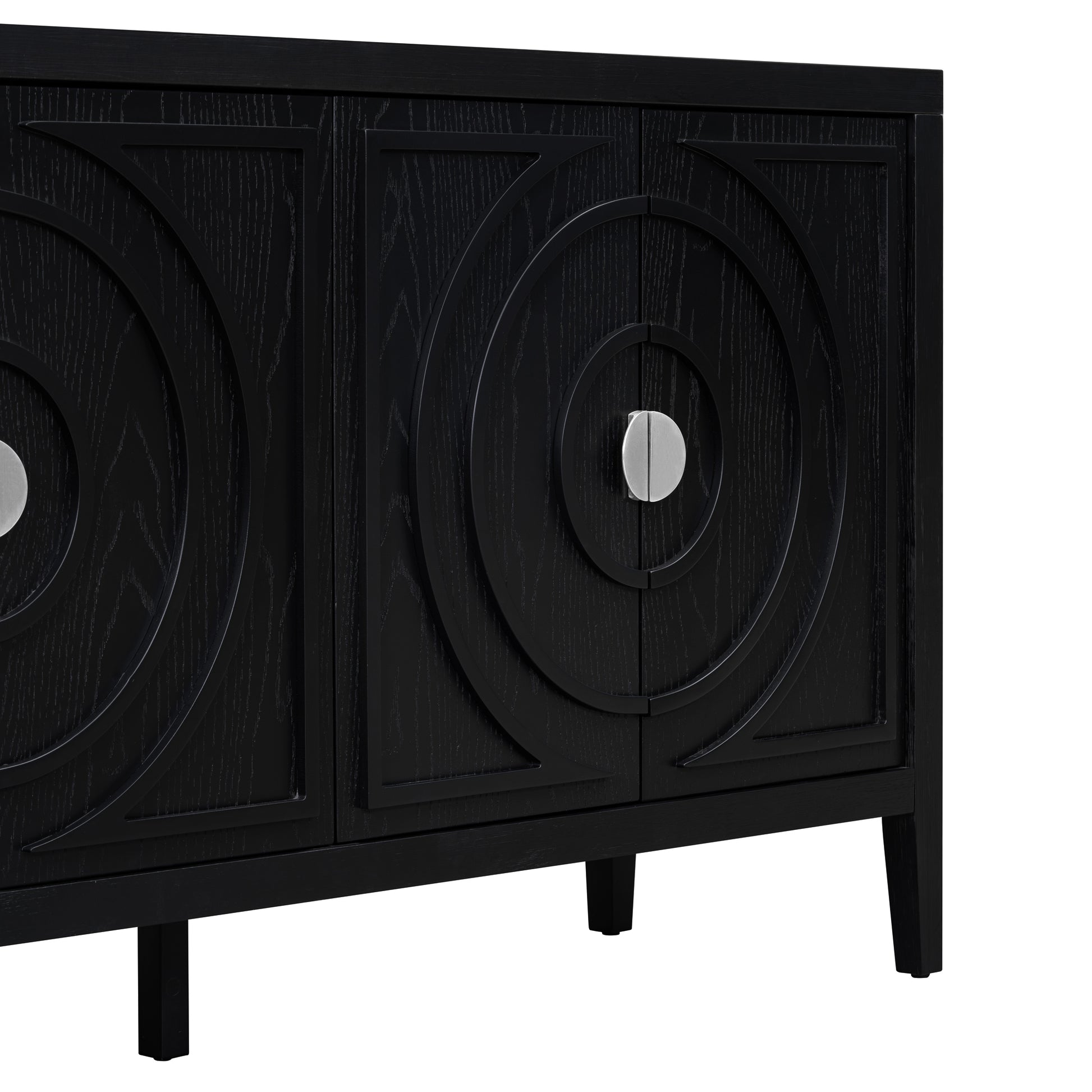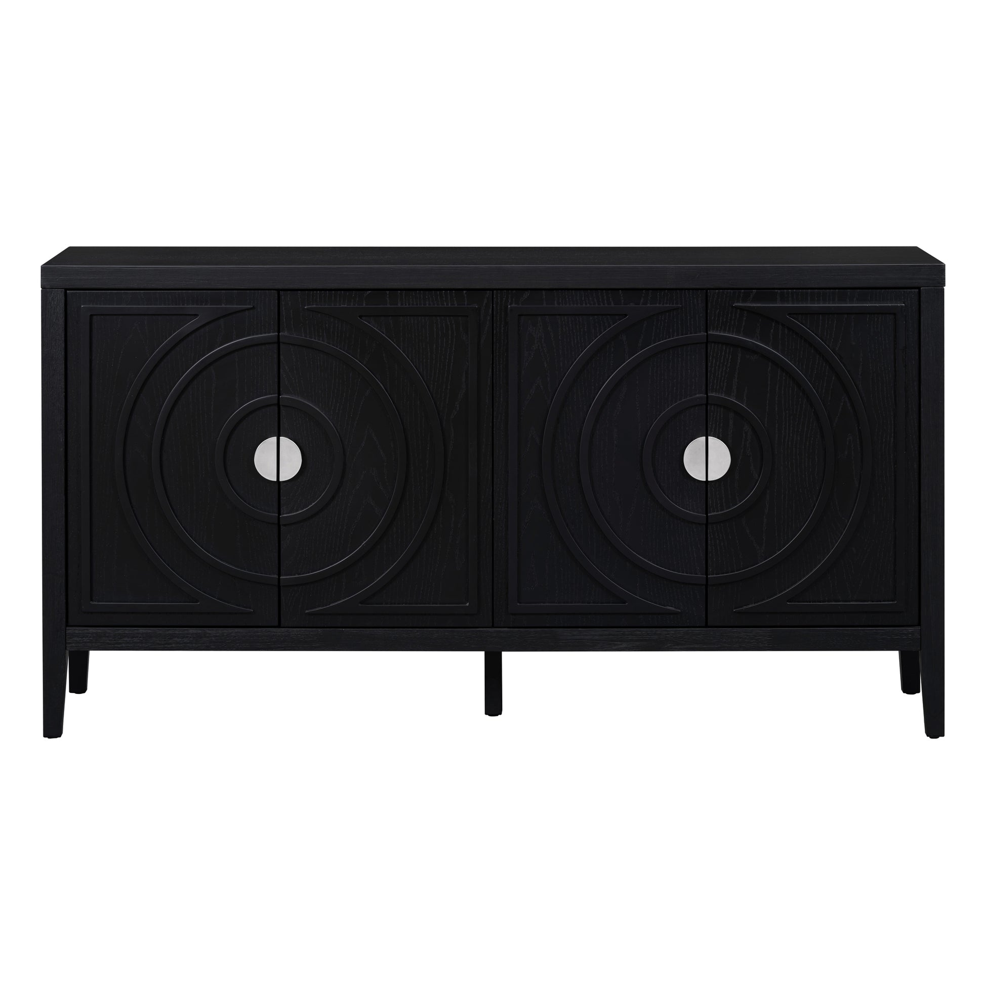 Elevate your entryway, dining room, or living space with the TREXM Retro Sideboard. This four-door cabinet combines vintage-inspired silhouette with practical storage, featuring rounded door lines and a distinctive circular groove design. The round metal door handles add a tactile, textured detail that enhances its retro charm.