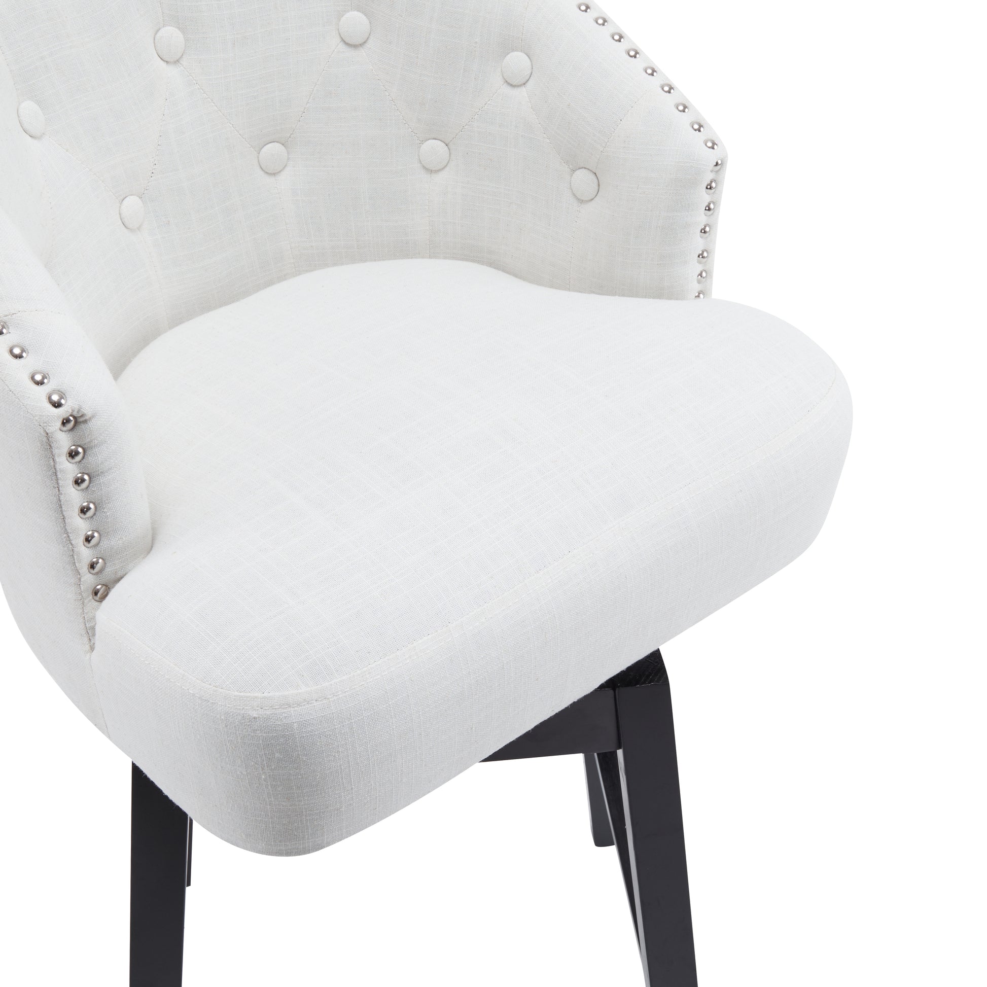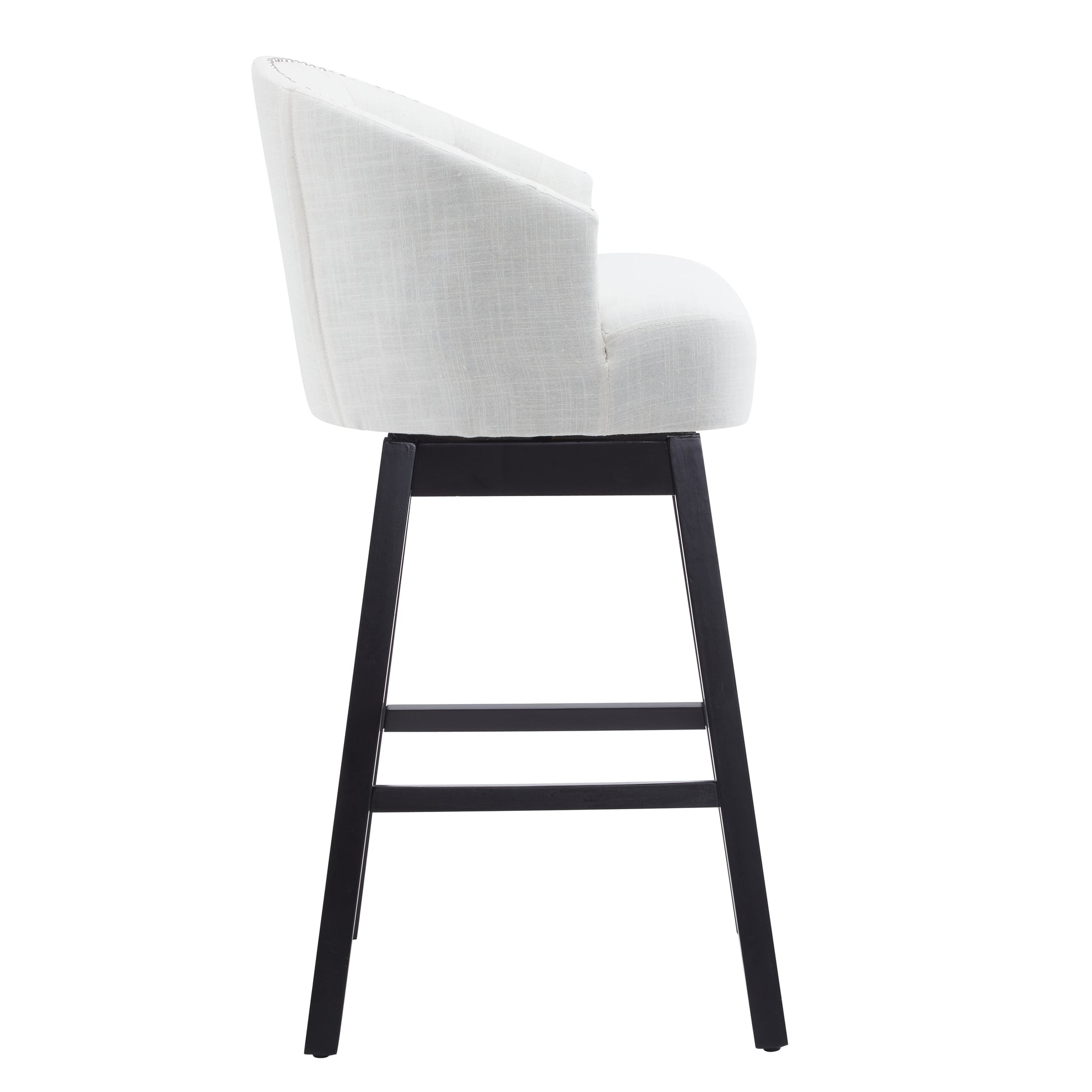 Elevate your entertaining space with the 33.25" Swivel Counter Stools. This stylish pair is designed for home bars, kitchen counters, and dining areas, combining modern flair with lasting durability. A solid rubberwood frame supports plush fabric upholstery in a chic beige and black palette, featuring a tufted back, armless design, and a smooth 360-degree swivel for effortless reach to every corner of your space.