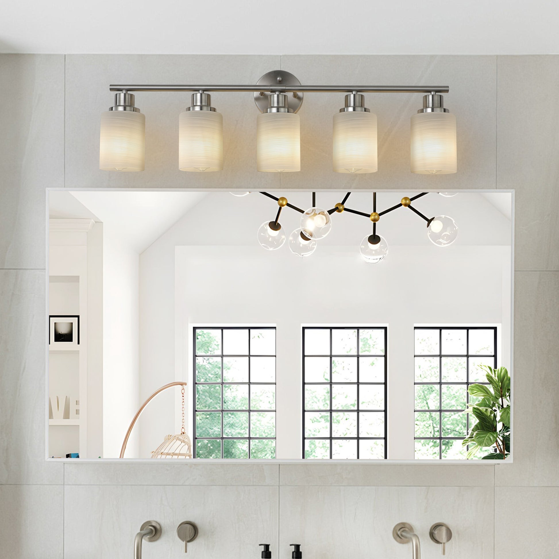 5-Light Brushed Nickel Vanity Sconce with Frosted Glass Shades