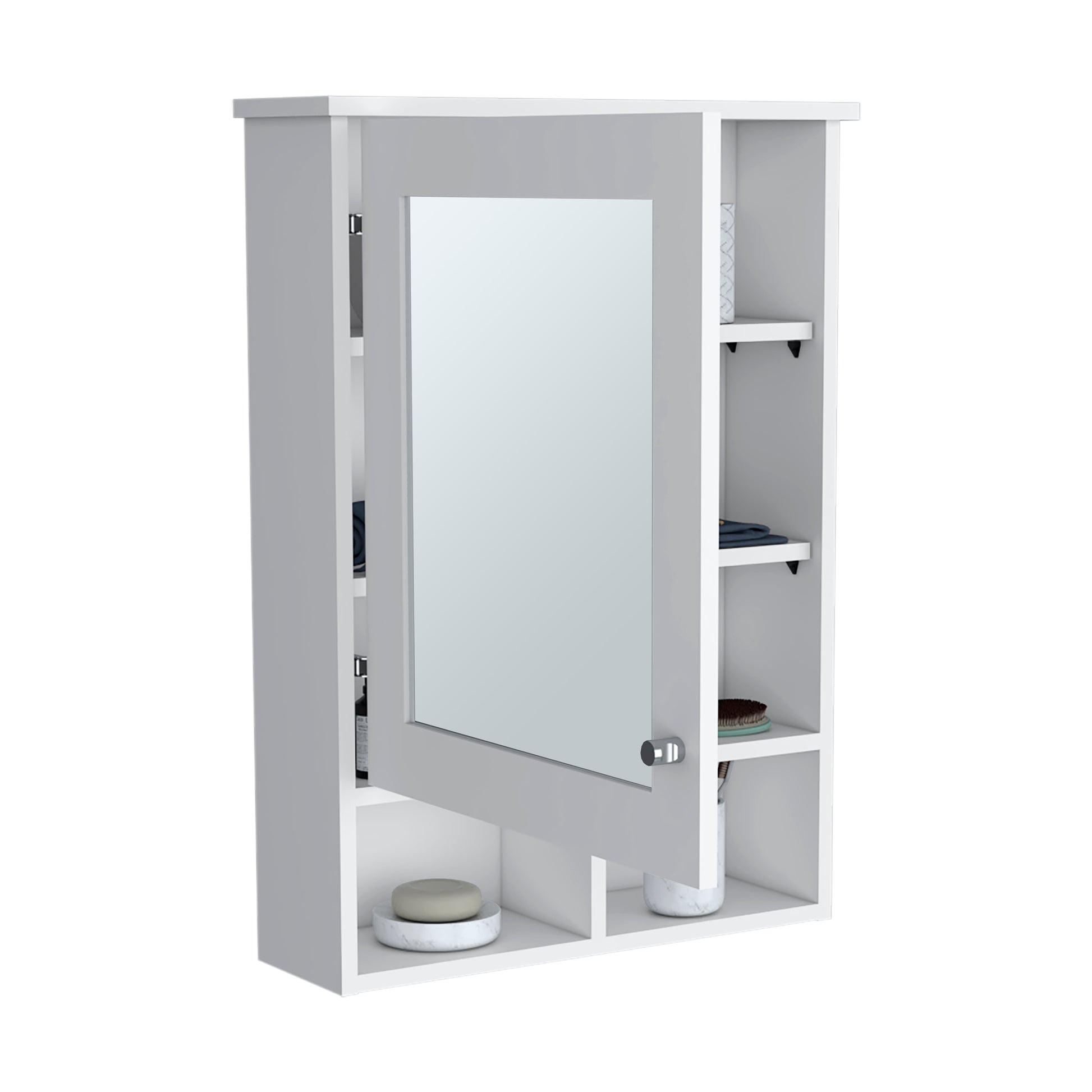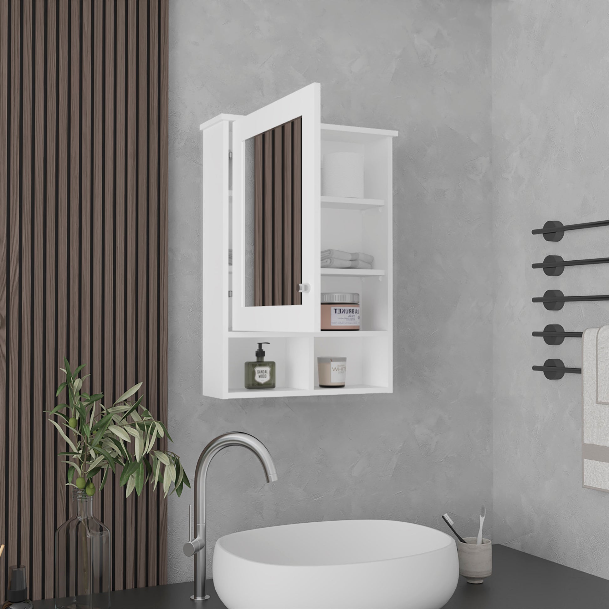 Vina Medicine Cabinet with Mirror Door 29" High Cabinet Organizer with Three concealed Shelves and Two Open shelves for Bathroom, Kitchen, Mudroom