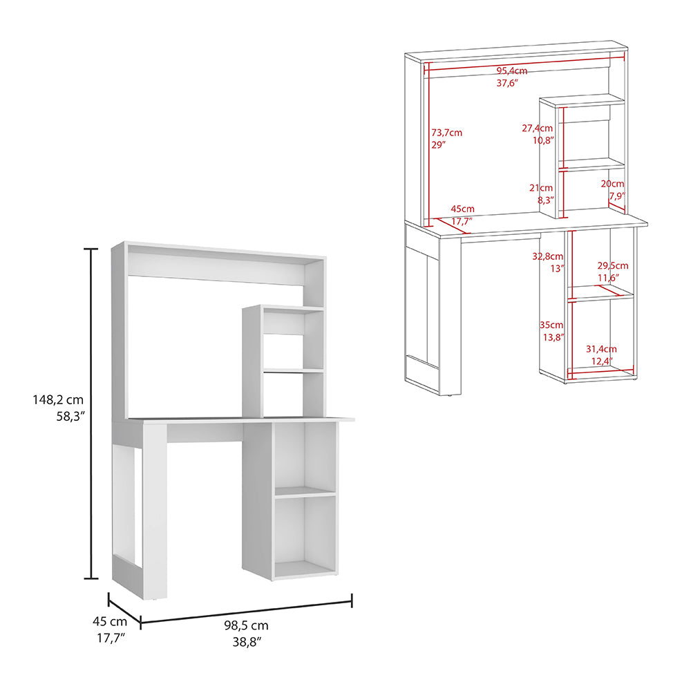 Elevate your productivity with our Compact White Desk with Hutch and Shelves. Designed for efficiency and style, this desk seamlessly blends functionality with modern aesthetics, making it the perfect addition to any home office or study area.