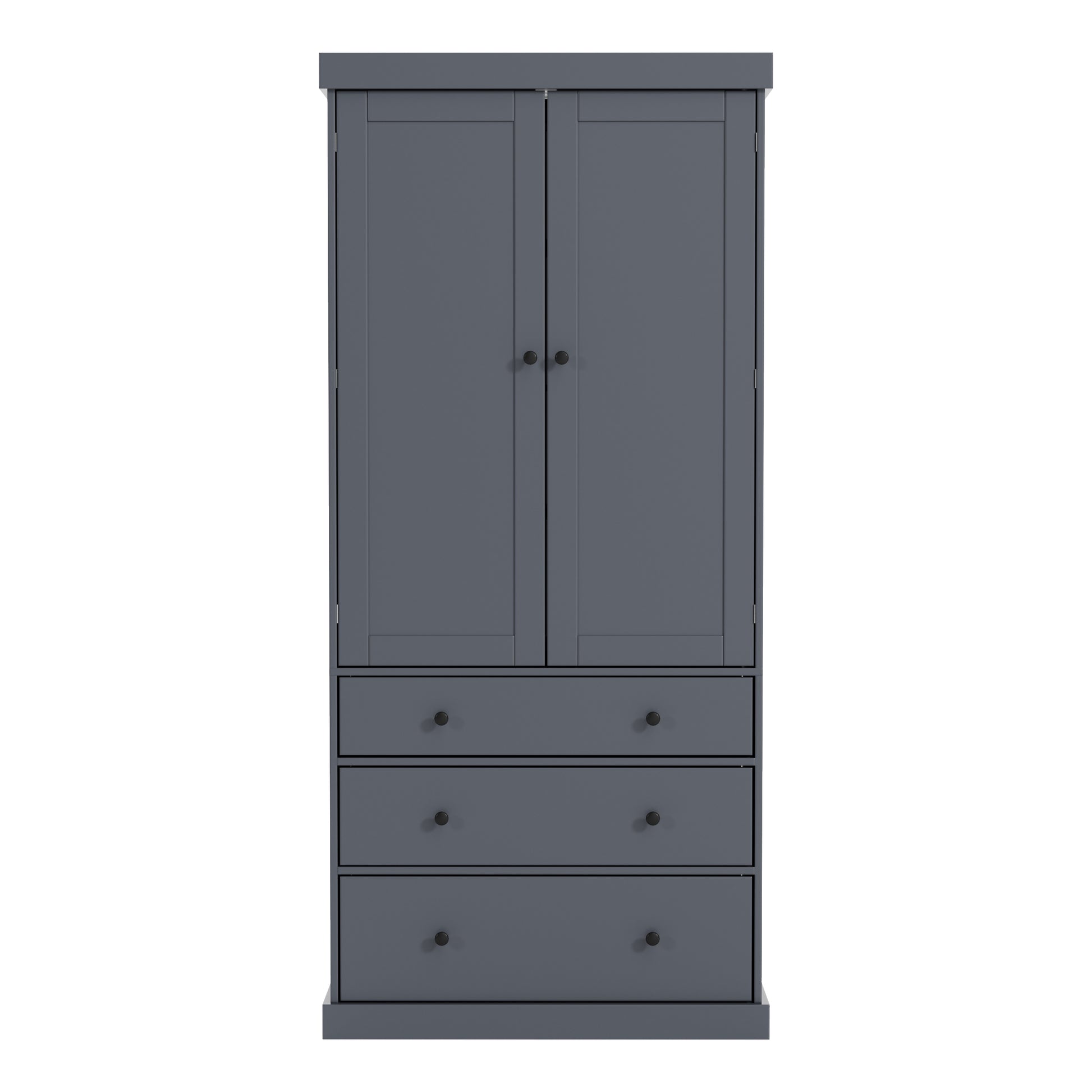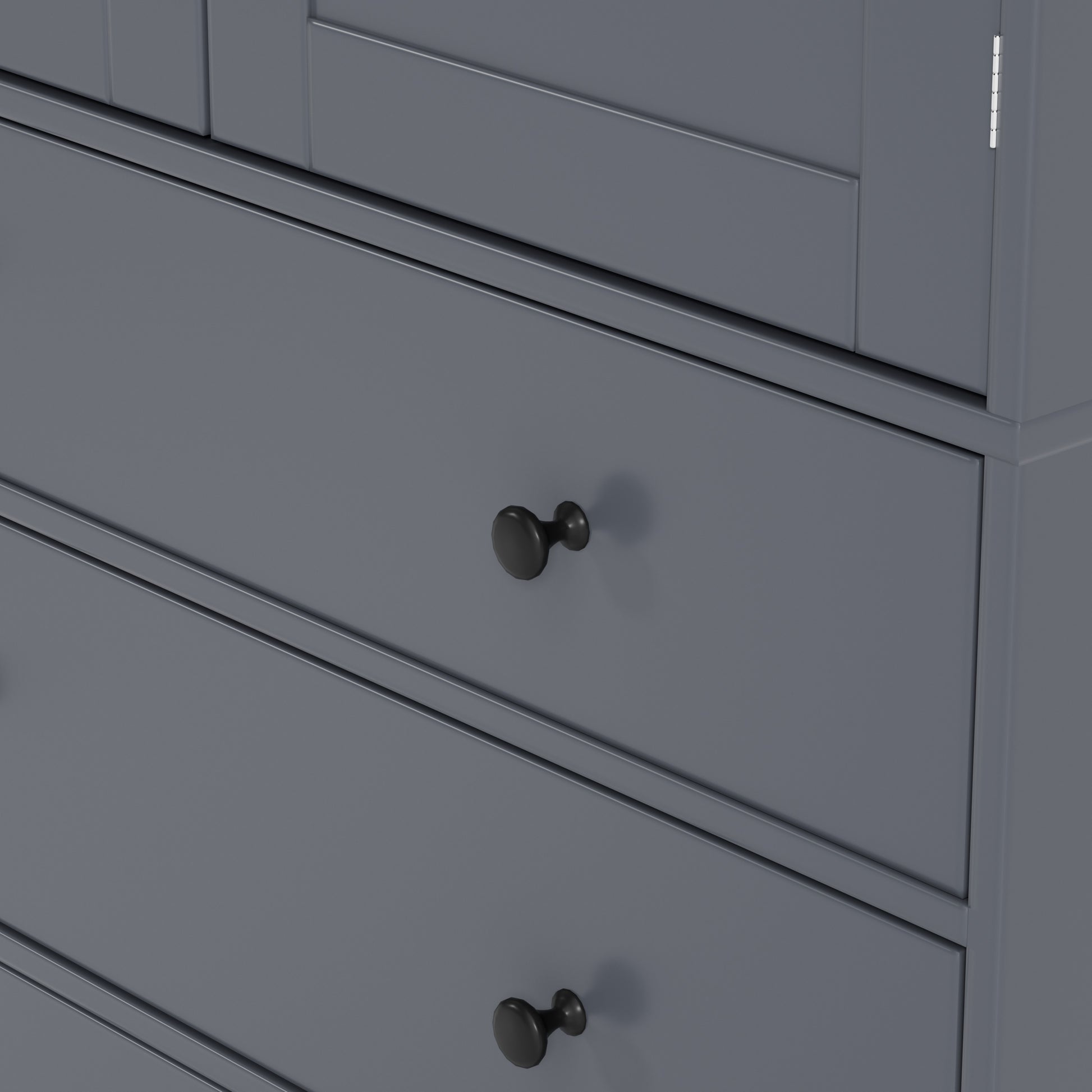 Tall Gray Farmhouse Kitchen Pantry Cabinet with Adjustable Shelves, Drawers, and Door Storage Solutions