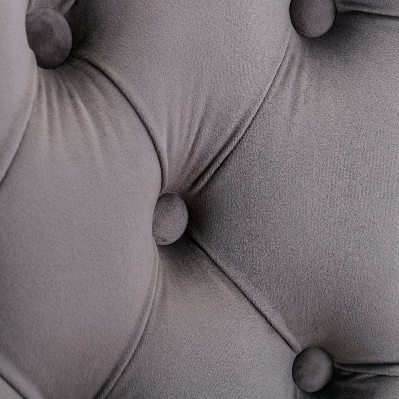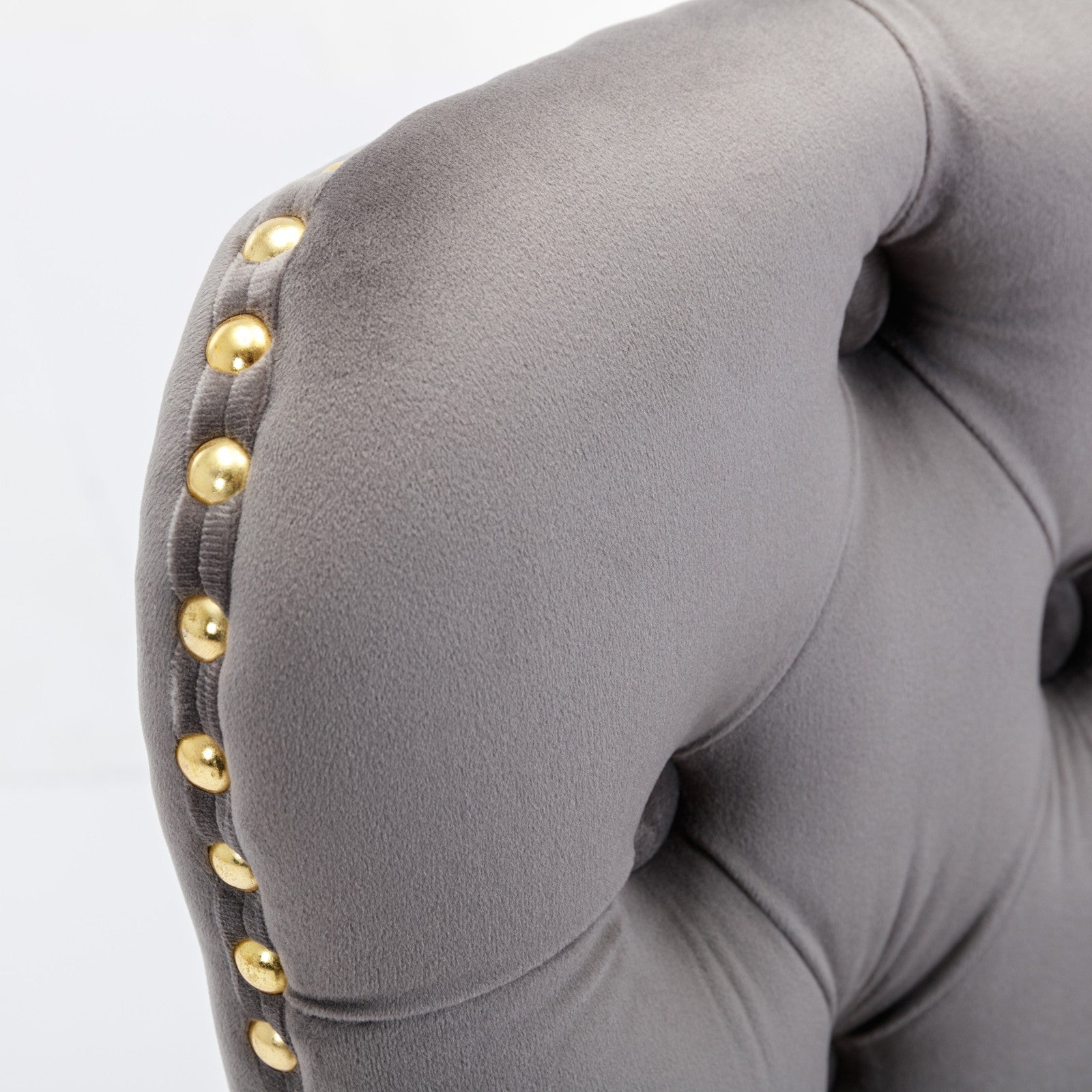 Designed for counter heights, the seat height adjusts from 25 to 33 inches, ensuring a comfortable fit at most islands. The tufted back provides targeted support, while dense foam cushions the seat for hours of relaxed seating. The quiet gray velvet complements a wide range of decor, from contemporary to transitional.