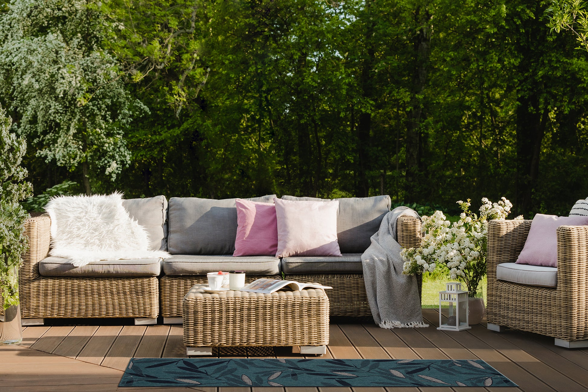 The bold teal hue adds a modern focal point to any space while the textured cut pile delivers subtle depth and visual interest underfoot. Its UV-stabilized finish keeps colors vibrant in sunny spots, and the polypropylene construction is built to handle outdoor exposure as well as everyday indoor wear.