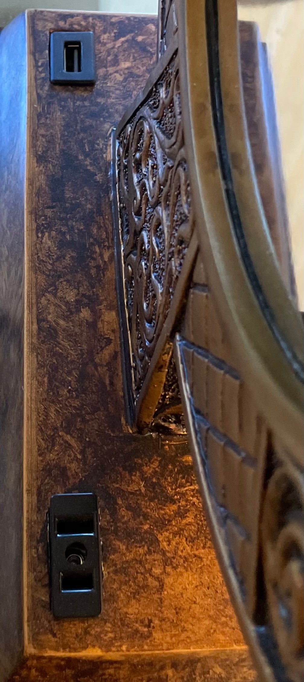 Designed for bedrooms, living rooms, or offices, this lamp combines classic design with modern convenience. The antique brown finish pairs with crystal accents to complement traditional and contemporary décors alike. The built-in night light adds a gentle glow, while the base outlets keep your devices within reach.