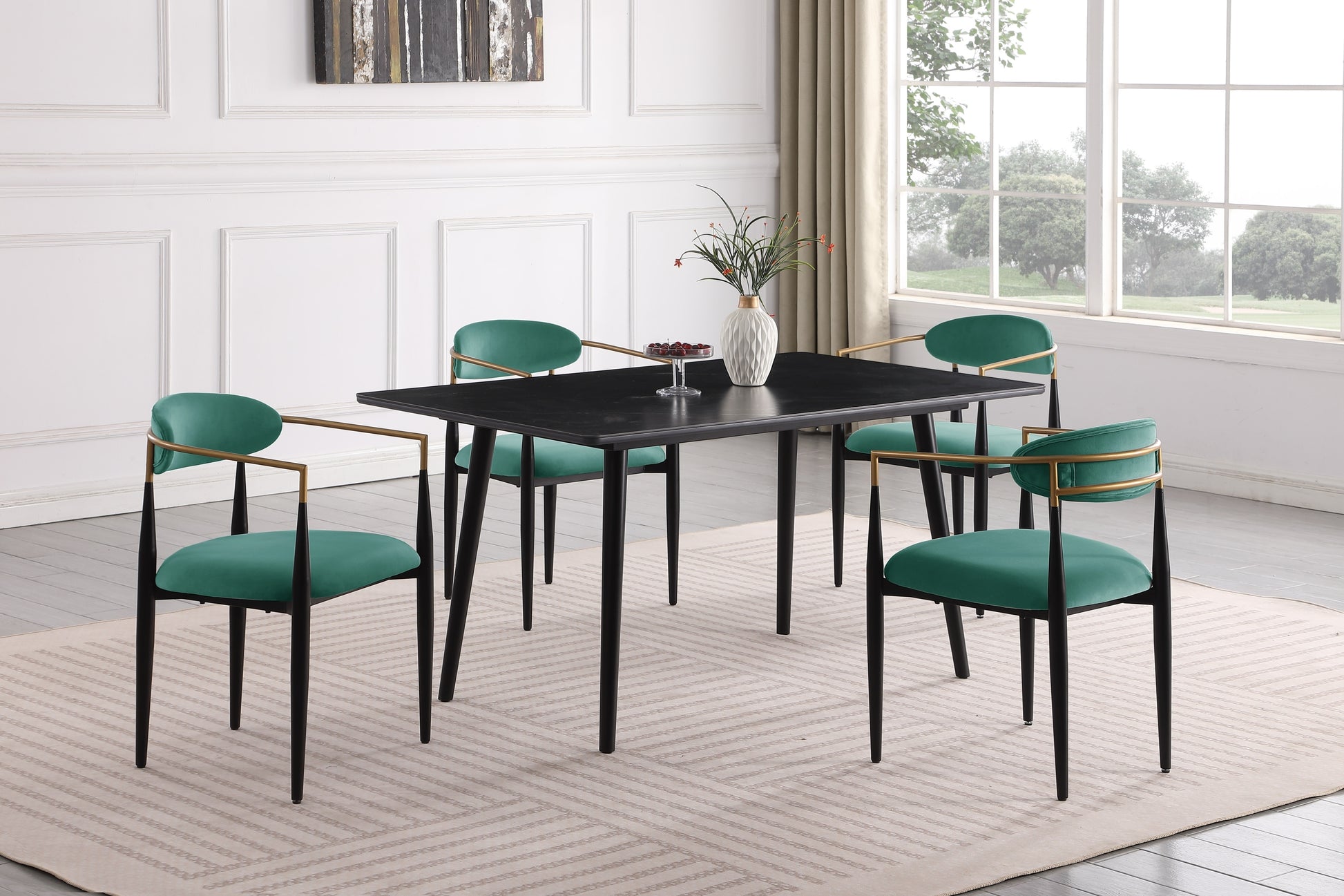 Upgrade your dining area with these ultra-modern fabric upholstered chairs. The vibrant green upholstery pairs with a sleek dark frame to create a contemporary look that fits modern and transitional dining spaces. Perfect for daily meals or entertaining guests, these chairs combine style with comfortable seating.