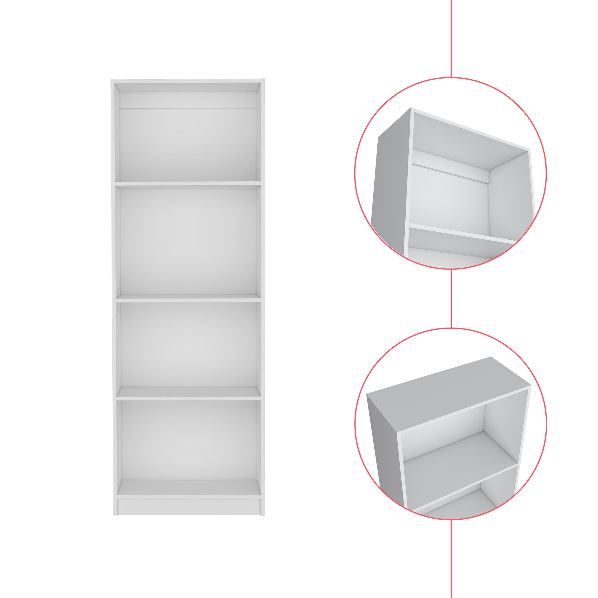 Benzoni White Office Bookcase with Four-Tier Shelving