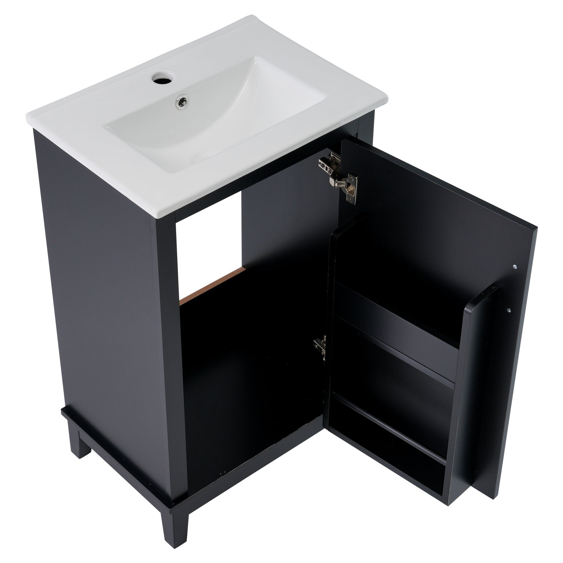 Compact 20-Inch Black Bathroom Vanity Cabinet with Ceramic Sink - Modern Design, Ample Storage, Soft-Close Door