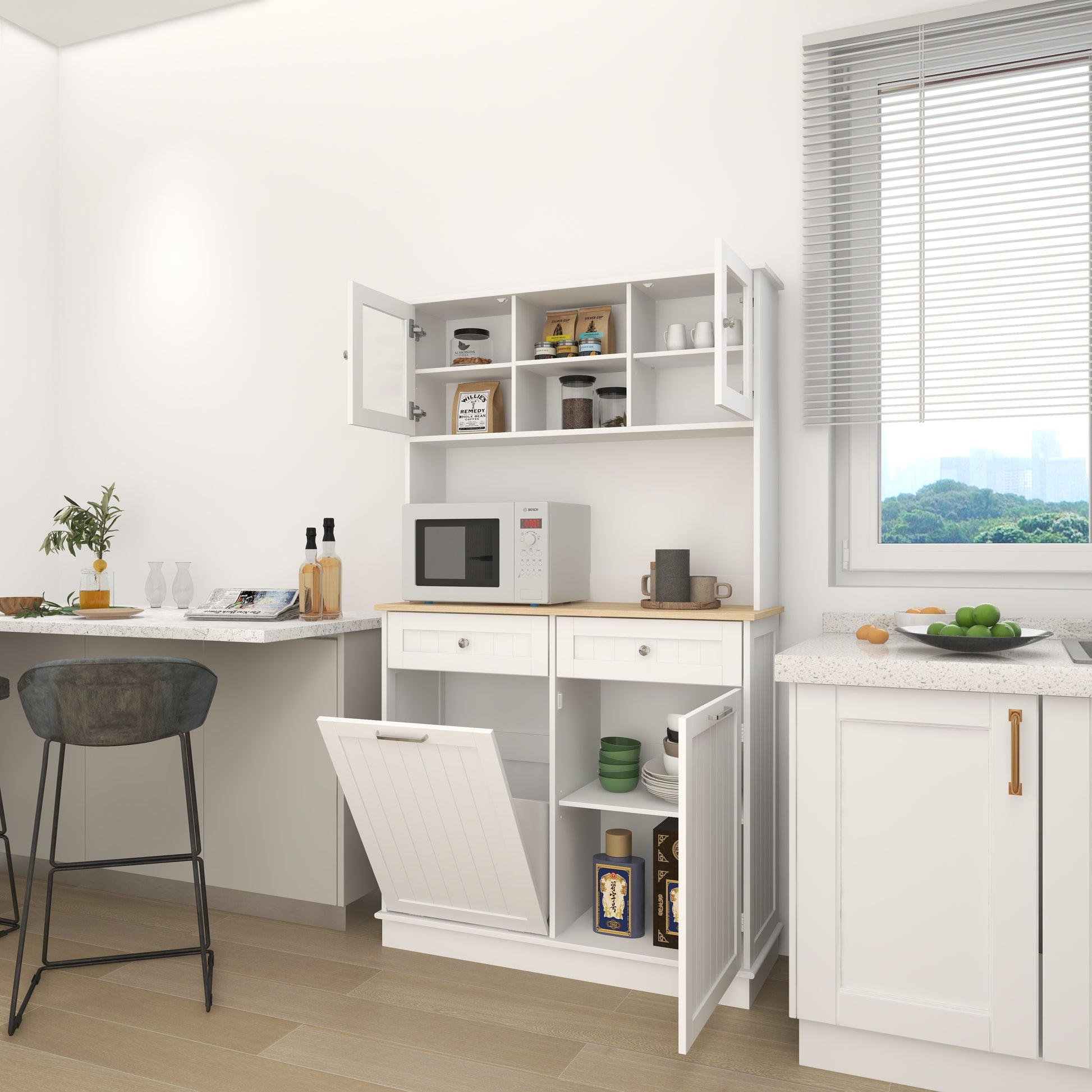 67.7" Tall Kitchen Trash Can Storage Cabinet with 3 Adjustable Shelves, 2 Drawers and 1 Tilt Out Trash Cabinet for Kitchen, Dinning Room, Living Room-White