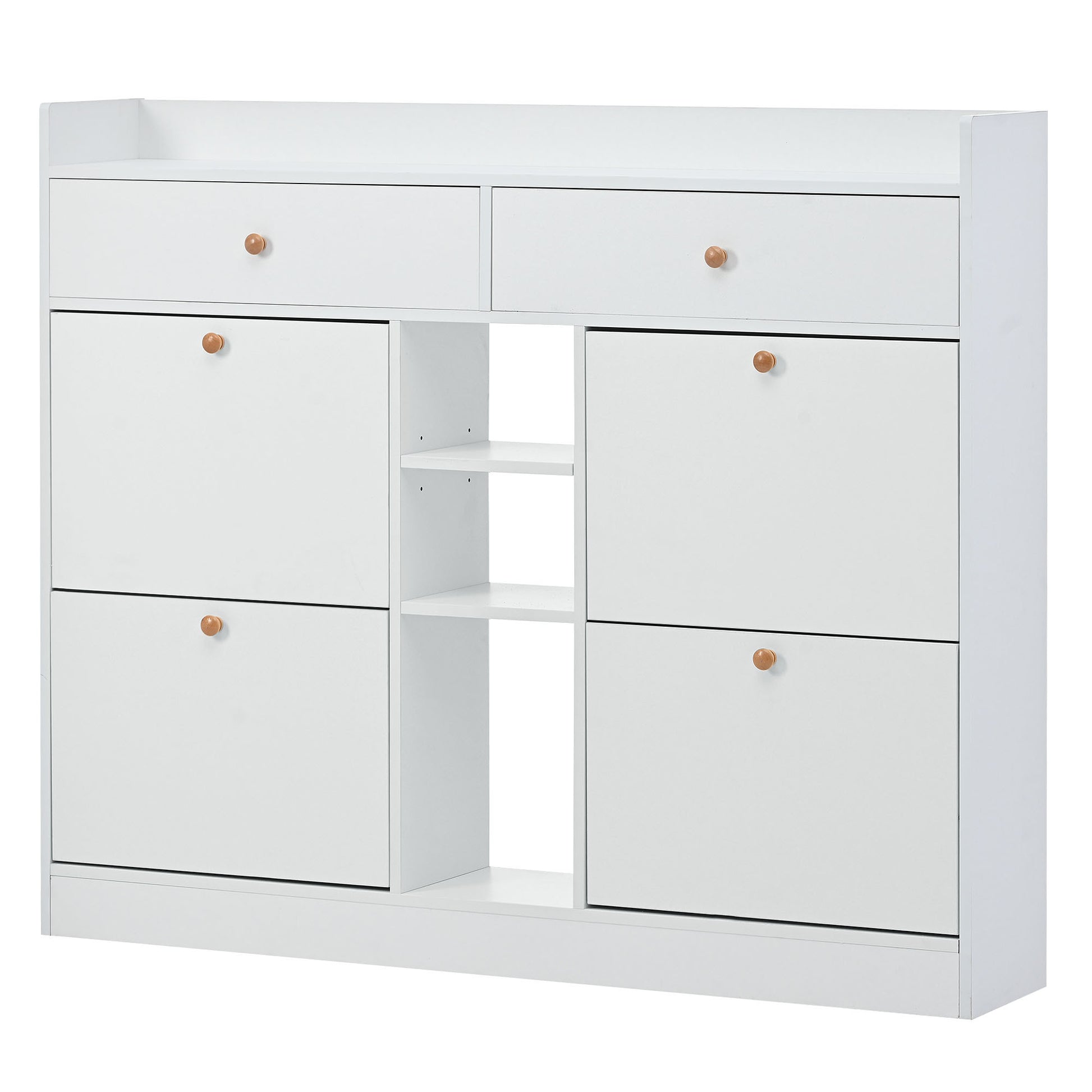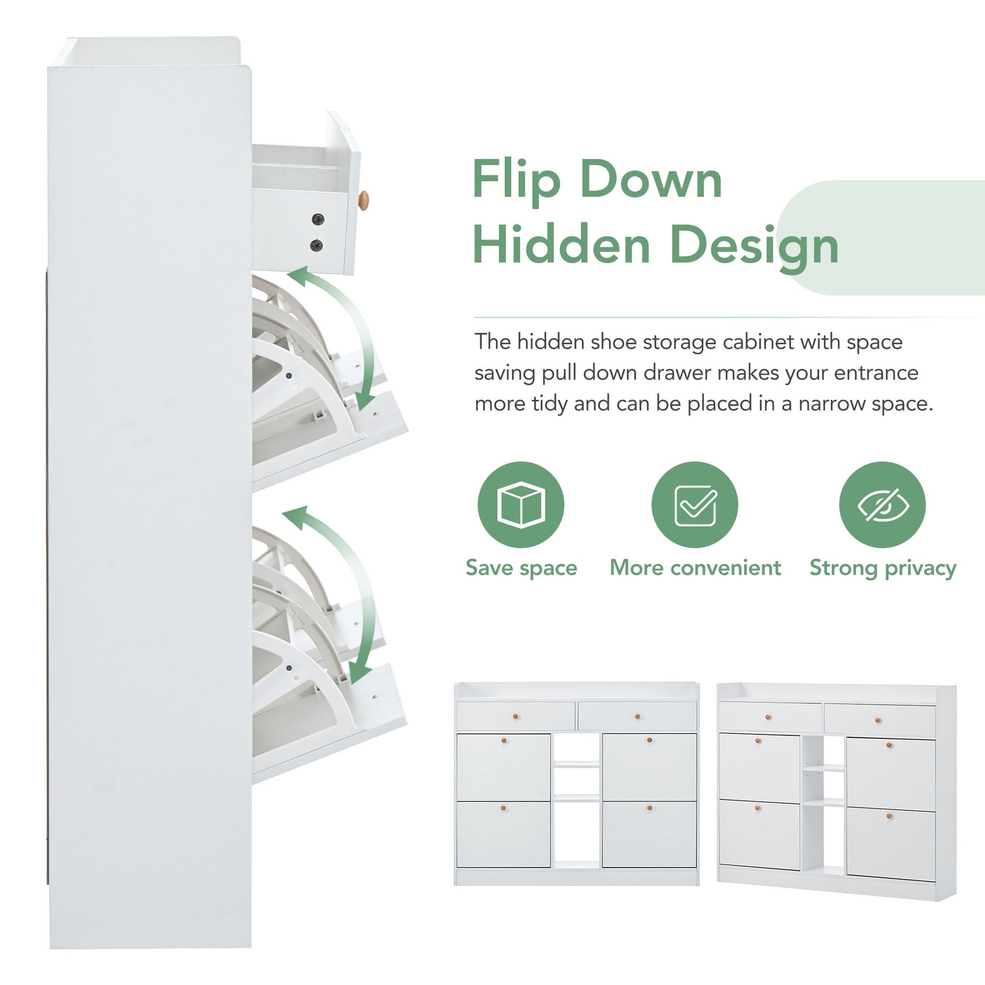 Stylish Modern White Shoe Cabinet with 4 Flip Drawers, 2-Tier Shoe Storage Organizer for Entryway, Space-Saving Free Standing Rack