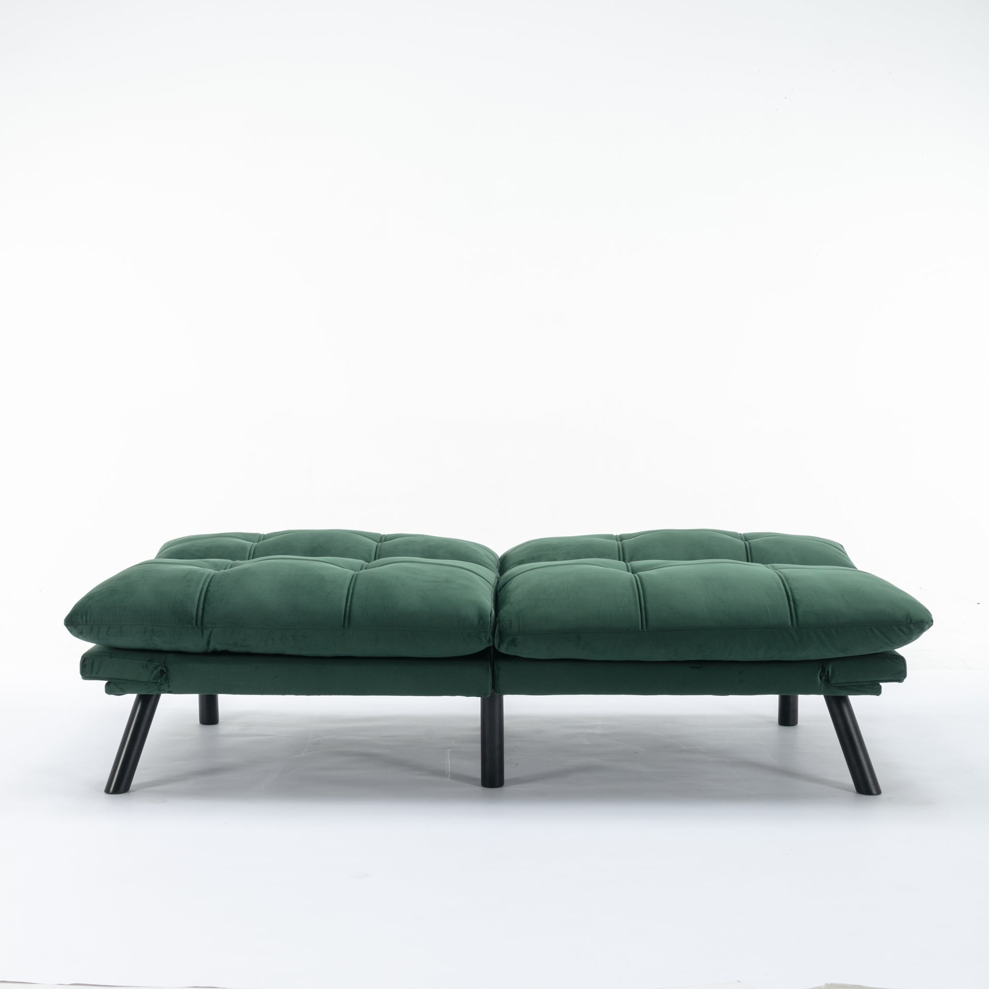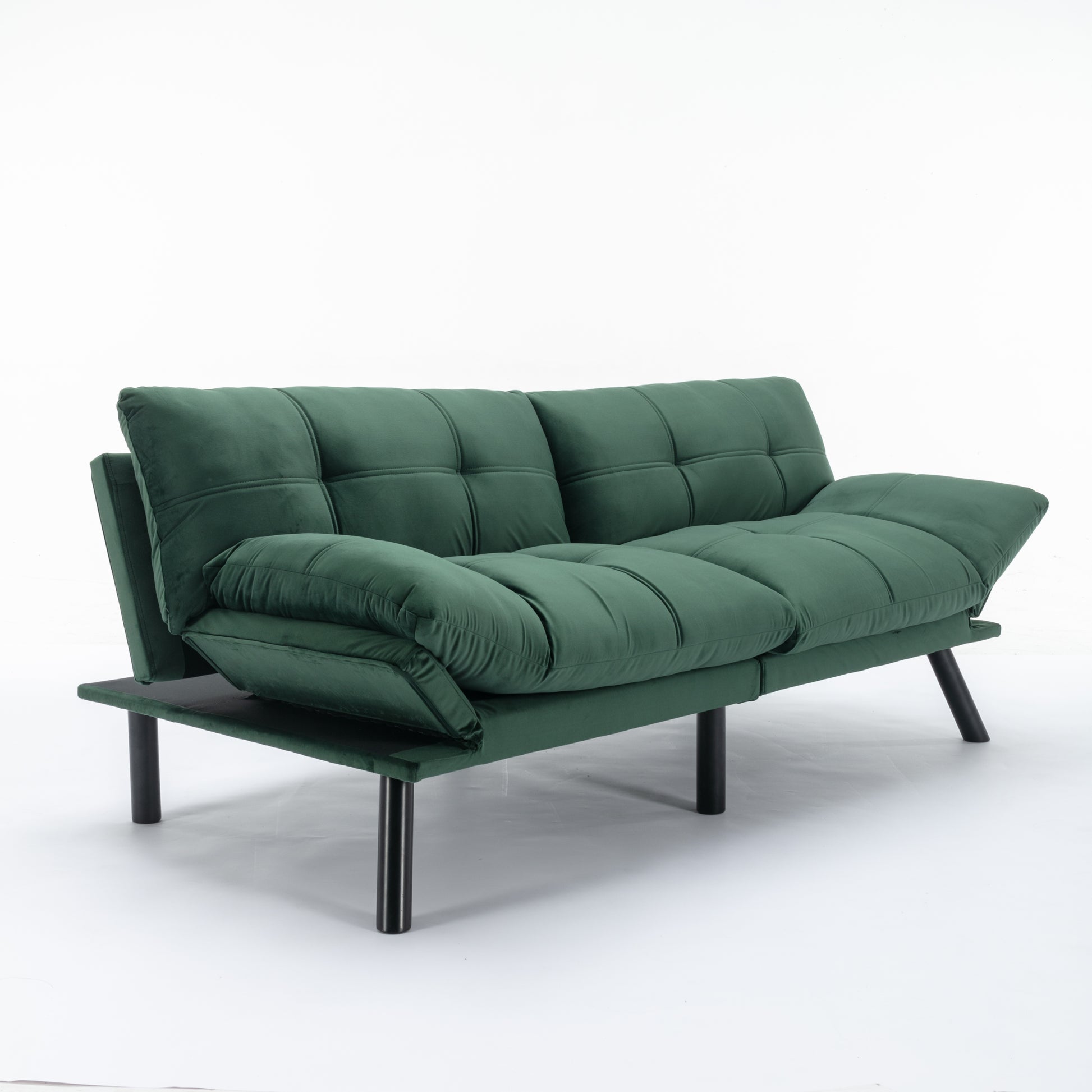 2-Seater Convertible Sofa Bed with Adjustable Backrest and Armrests, Foam Upholstery, Pine Frame Emerald