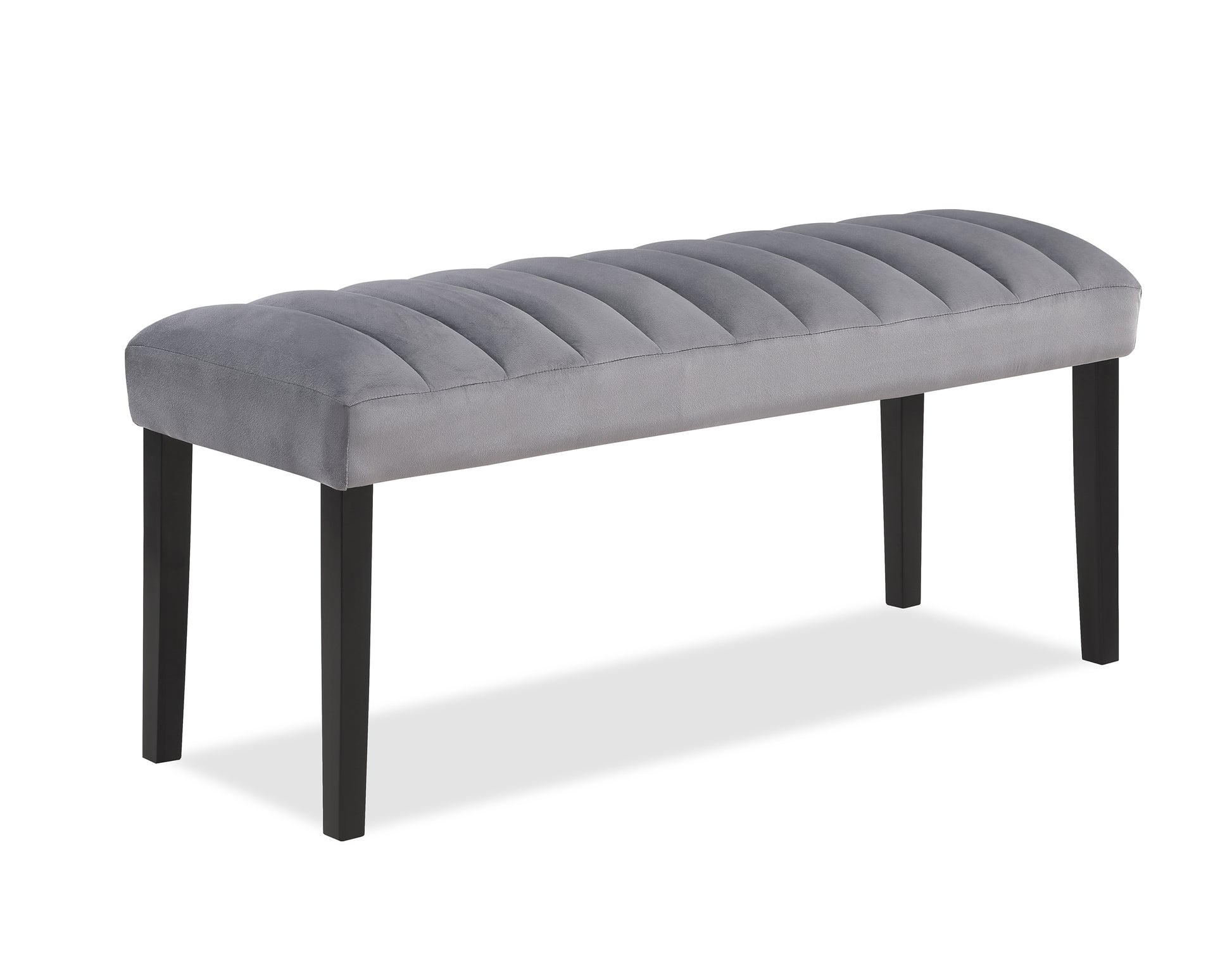 46-Inch Velvet Upholstered Dining Bench with Wood Frame, Modern Transitional Dining Room, Gray/Black