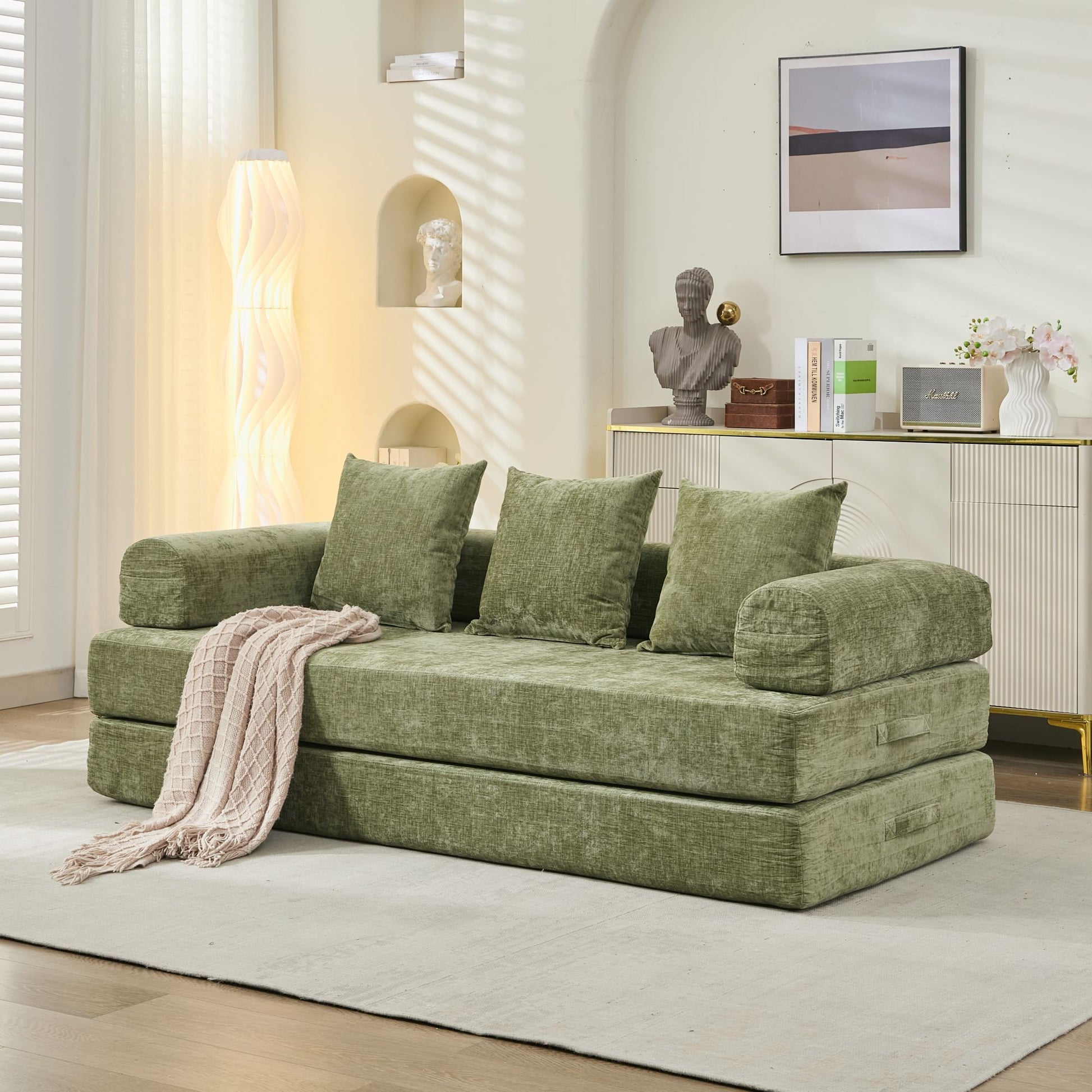 Convertible Sofa Bed with Armrests — Chenille Green, 78.8 in L x 37 in W
