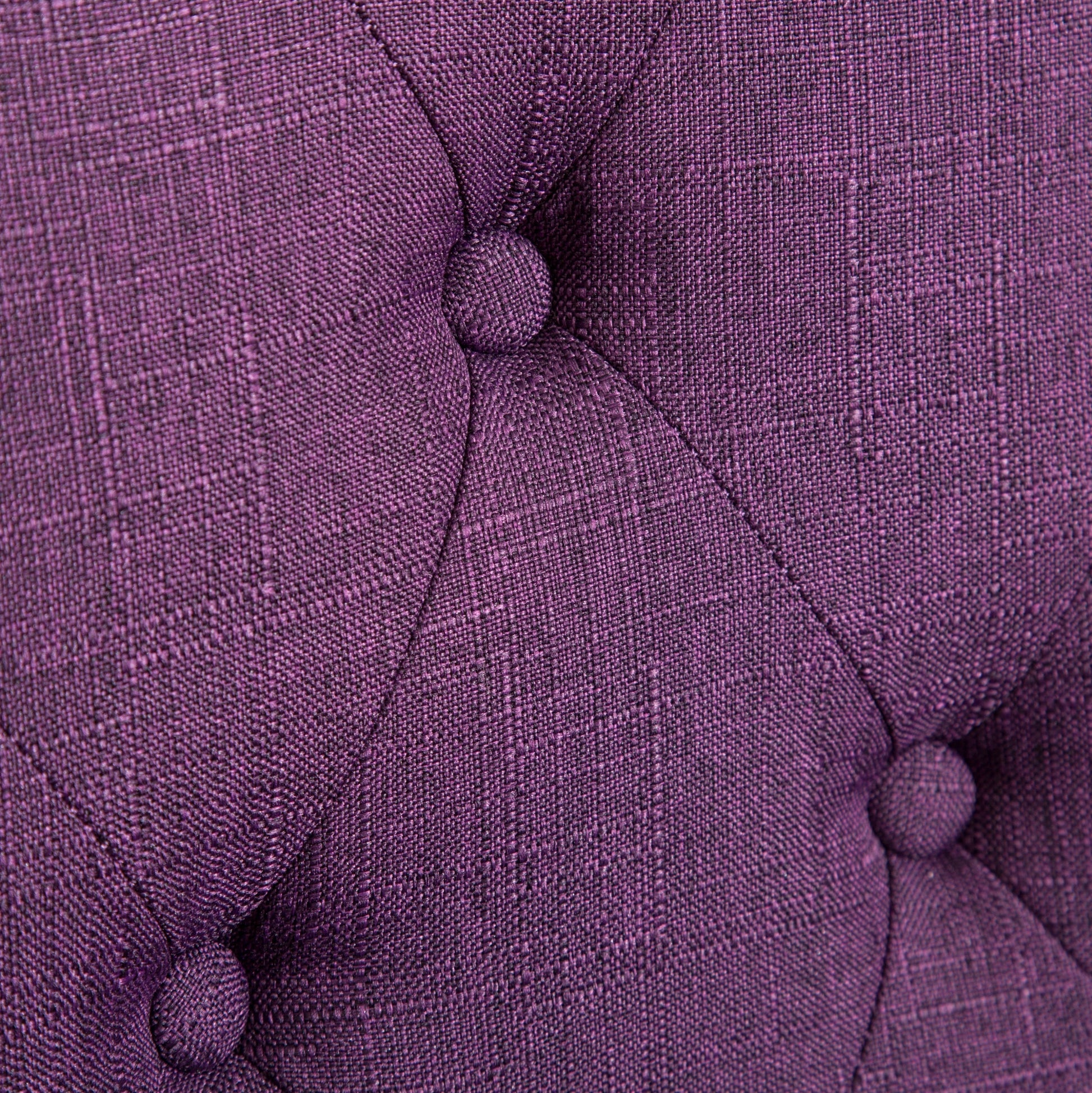 - Upholstery: Polyester fabric in rich purple with button tufting