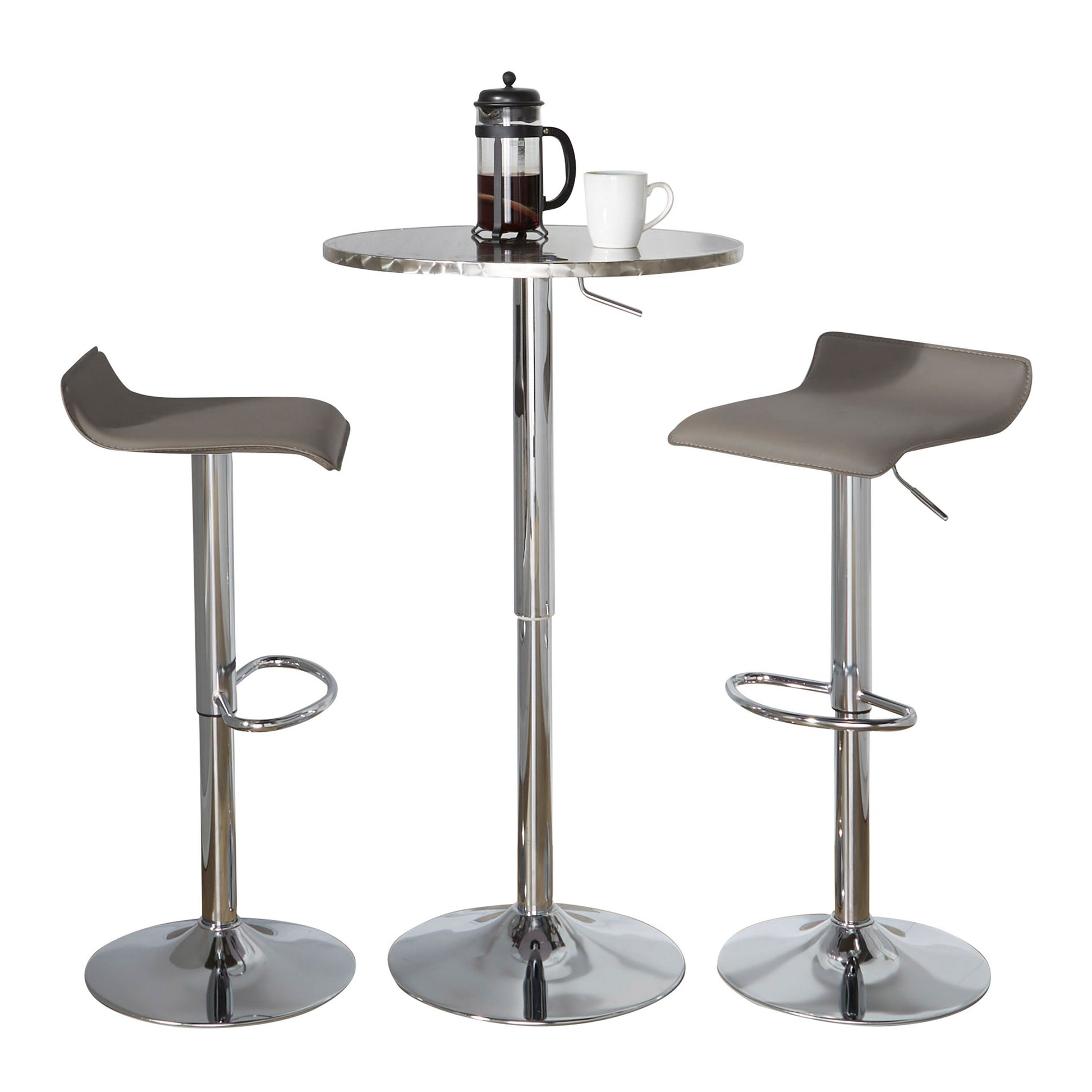 Round Bistro 3-Piece Adjustable Bar Set with Chrome Frame, Grey PVC Seats