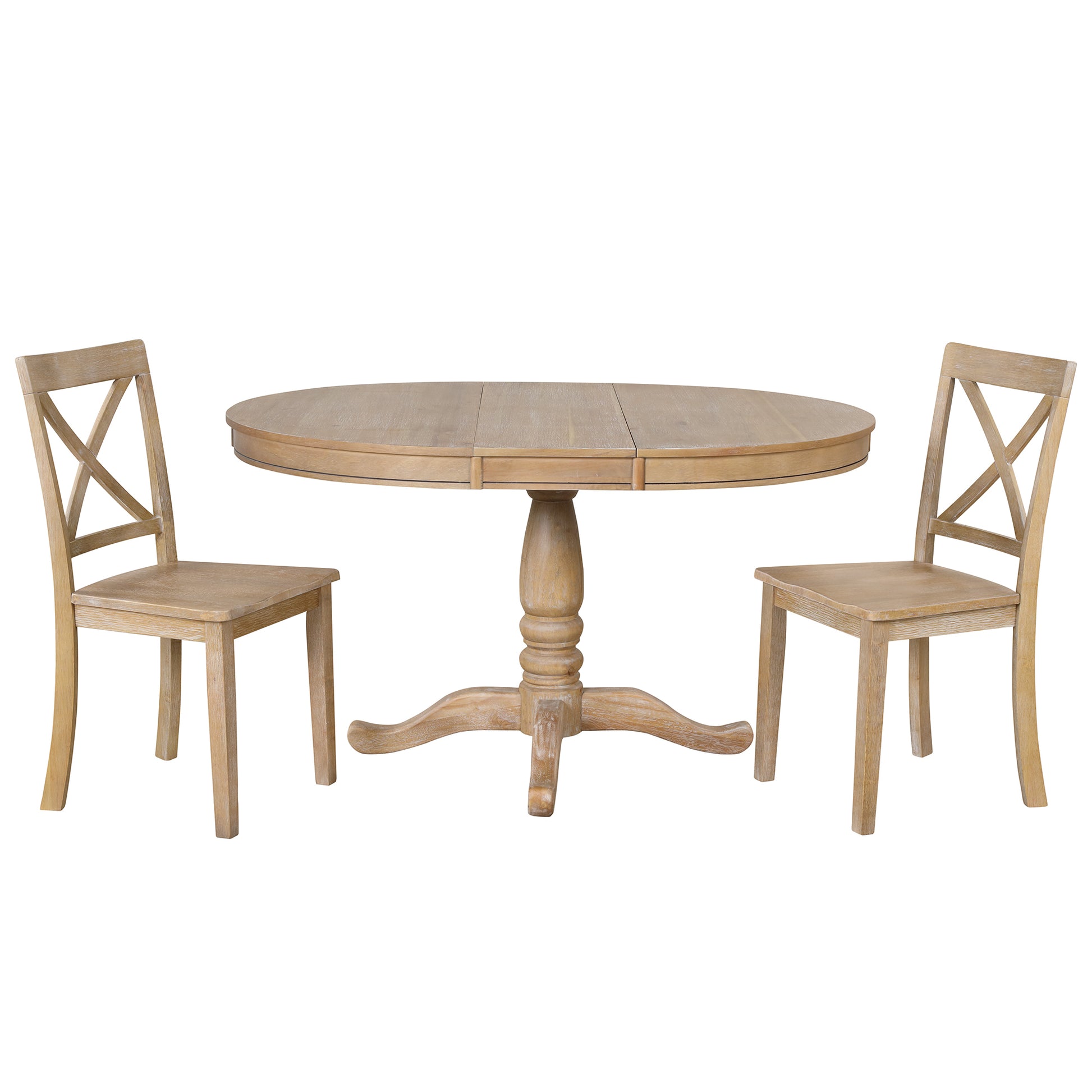 Modern Dining Table Set for 4,Round Table and 4 Kitchen Room Chairs,5 Piece Kitchen Table Set for Dining Room,Dinette,Breakfast Nook,Natural Wood Wash